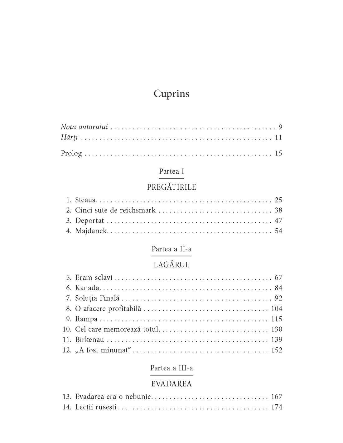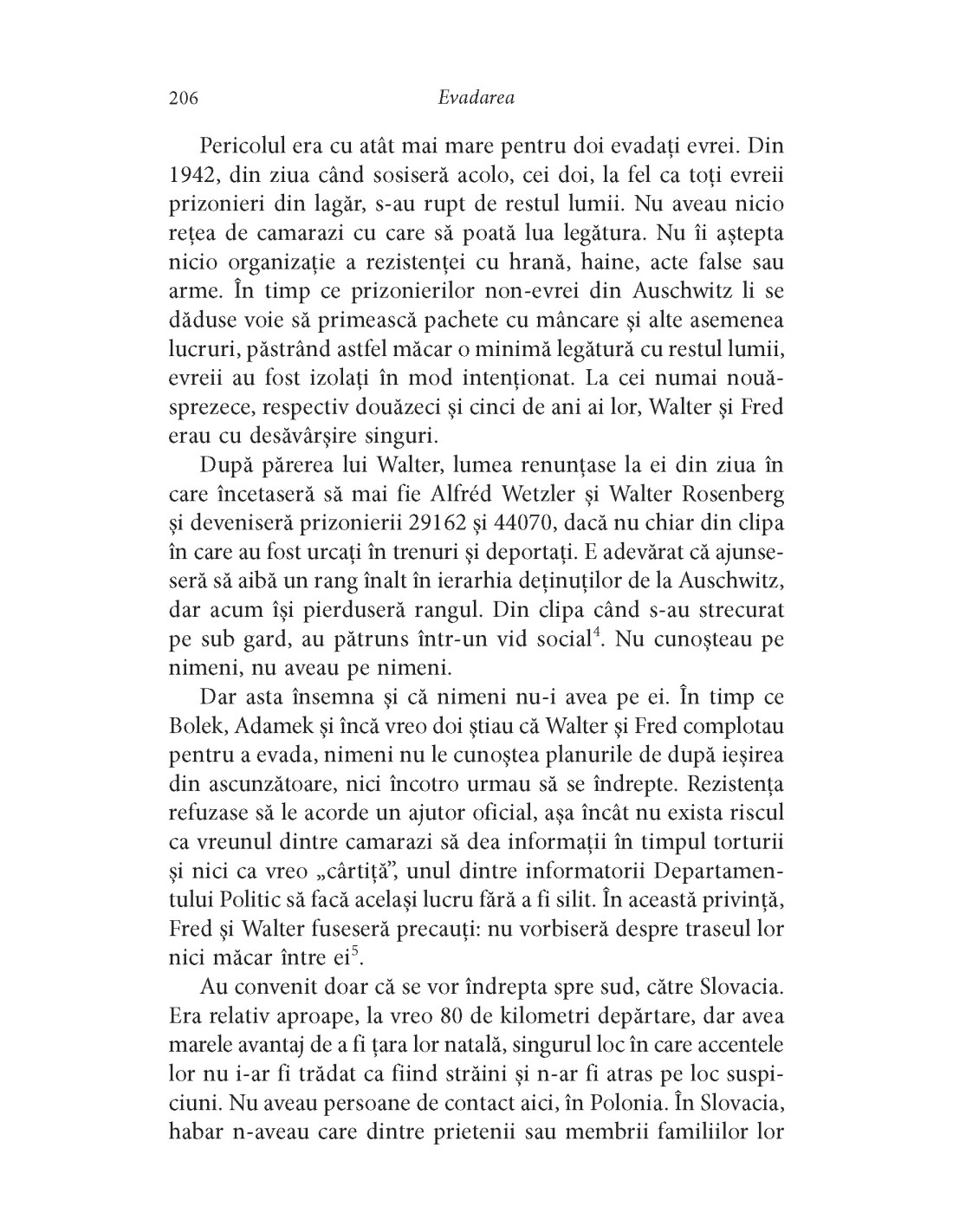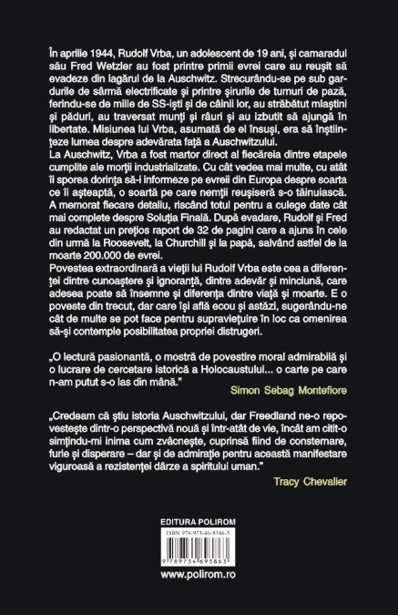 Povestea extraordinară a vieții lui Rudolf Vrba este cea a diferenței dintre cunoaștere și ignoranță, dintre adevăr și minciună, care adesea poate să însemne și diferența dintre viață și moarte. E o poveste din trecut, dar care își află ecou și astăzi, sugerându-ne cât de multe se pot face pentru supraviețuire în loc ca omenirea să-și contemple posibilitatea propriei distrugeri.