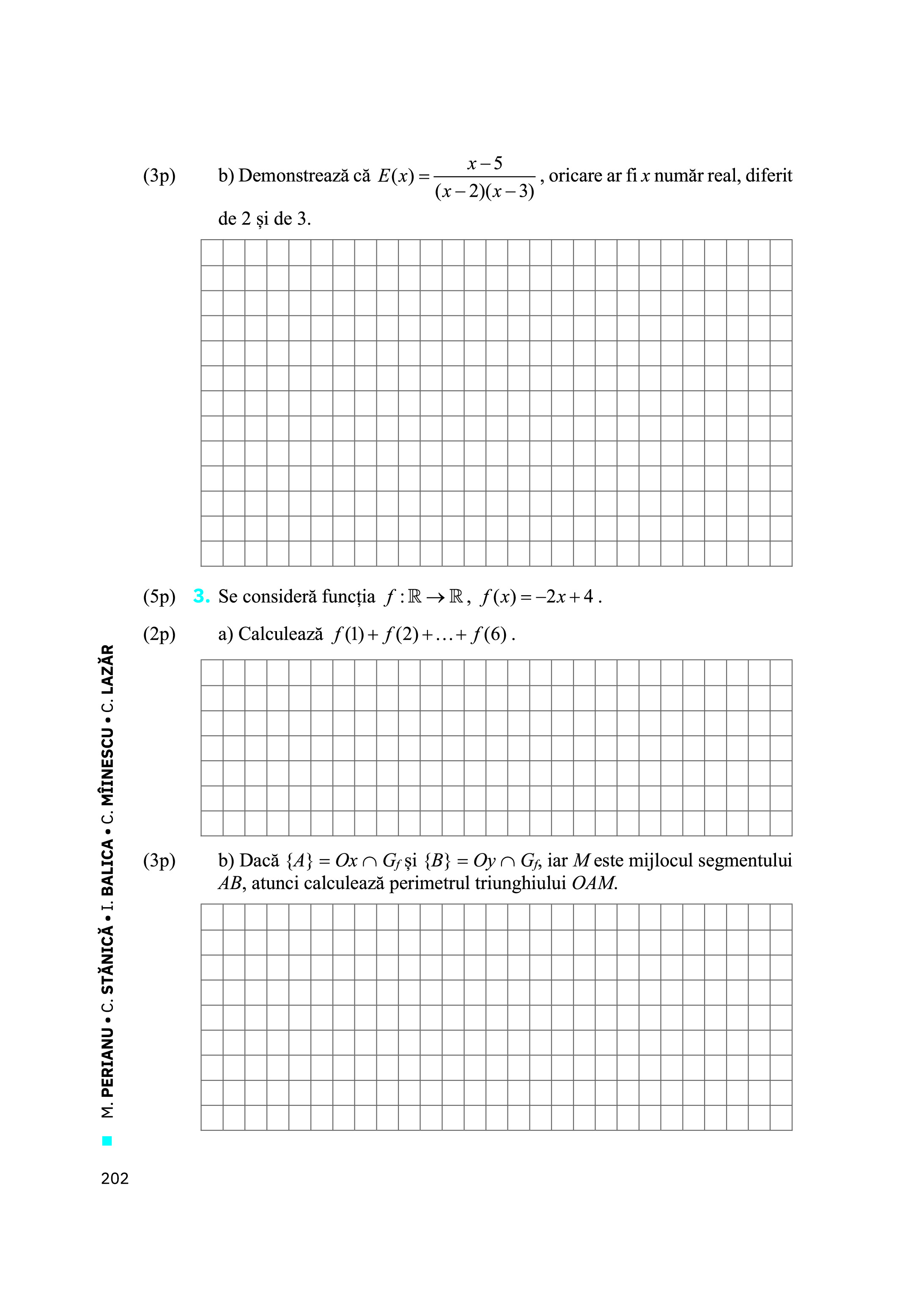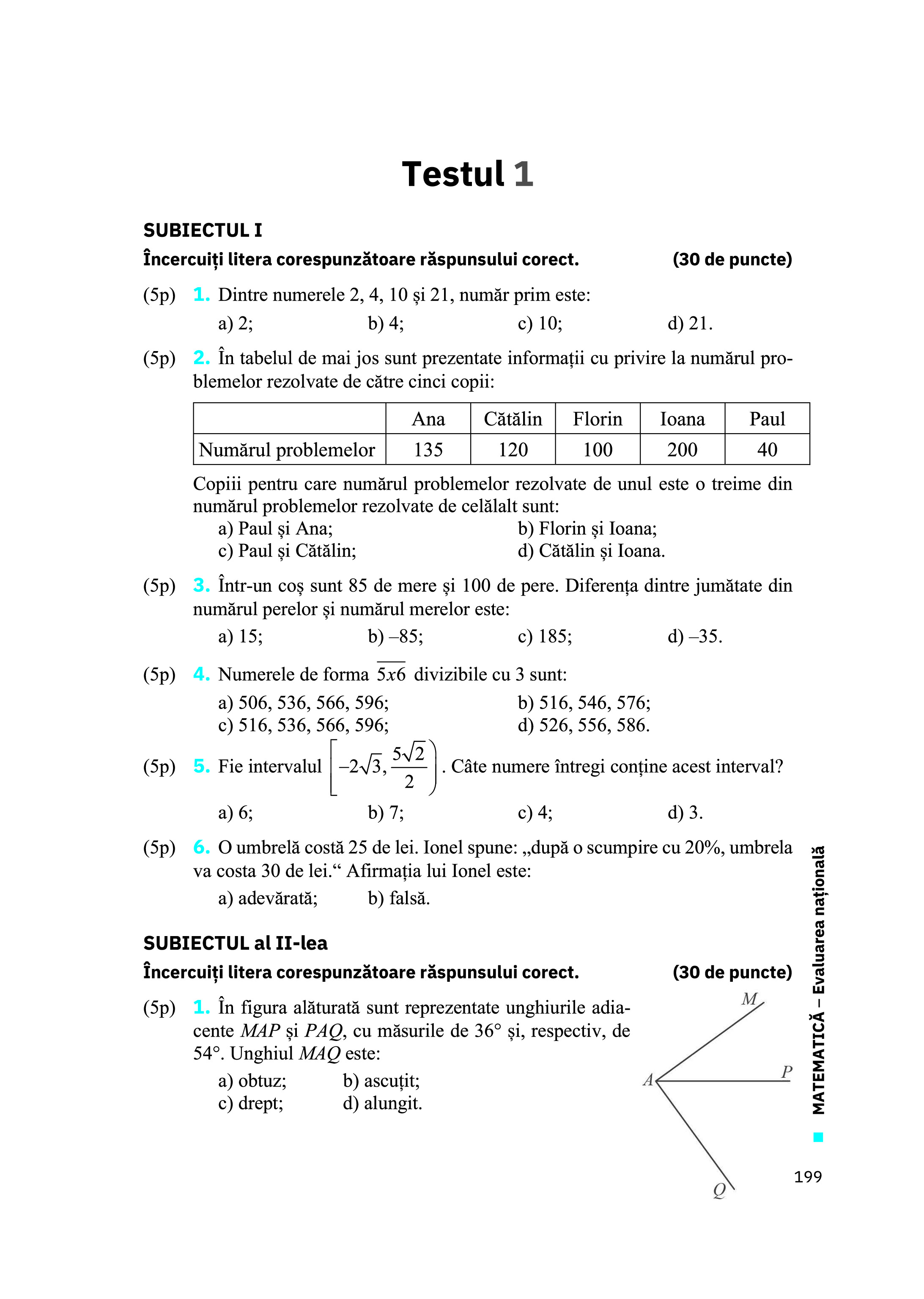 • permite verificarea stadiului pregătirii elevilor prin 10 teste pentru clasa a VII-a şi 20 de teste pentru clasa a VIII-a, însoţite de soluţii şi bareme, elaborate conform matricei de specificaţii pentru examenul de Evaluare naţională de la sfârşitul clasei a VIII-a.
