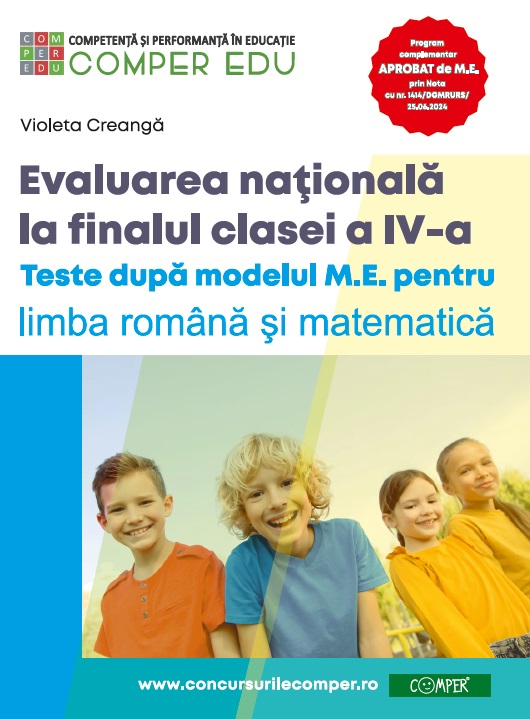 Lucrarea este destinată elevilor de clasa a IV-a pentru susţinerea probei de evaluare a competenţelor generale şi specifice la finalul anului şcolar. Proba constă în administrarea a două teste vizând evaluarea competentelor de intelegere a textului scris in limba romana şi evaluarea competenţelor de matematică. Testele propuse respectă întru totul standardele modelelor elaborate de Ministerul Educaţiei.