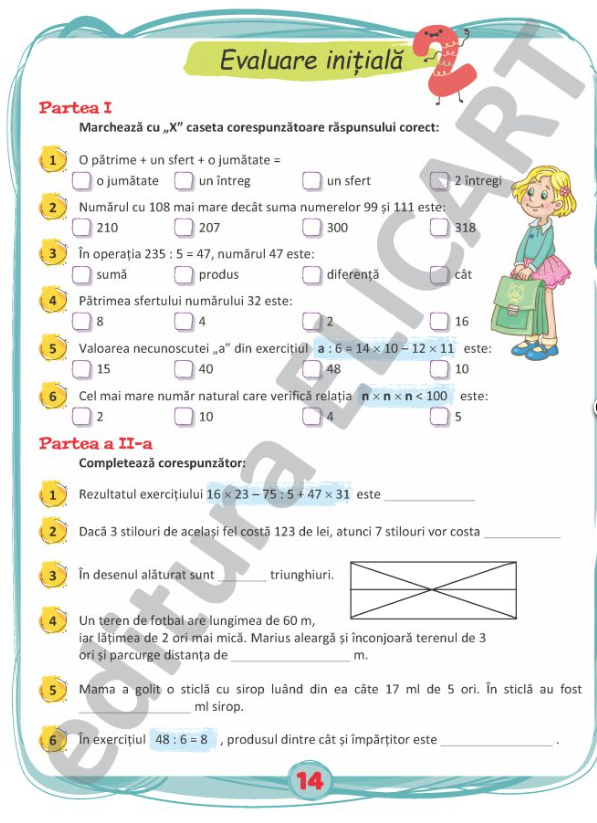 Evaluari initiale - Clasa a IV-a - Limba si literatura romana. Matematica
