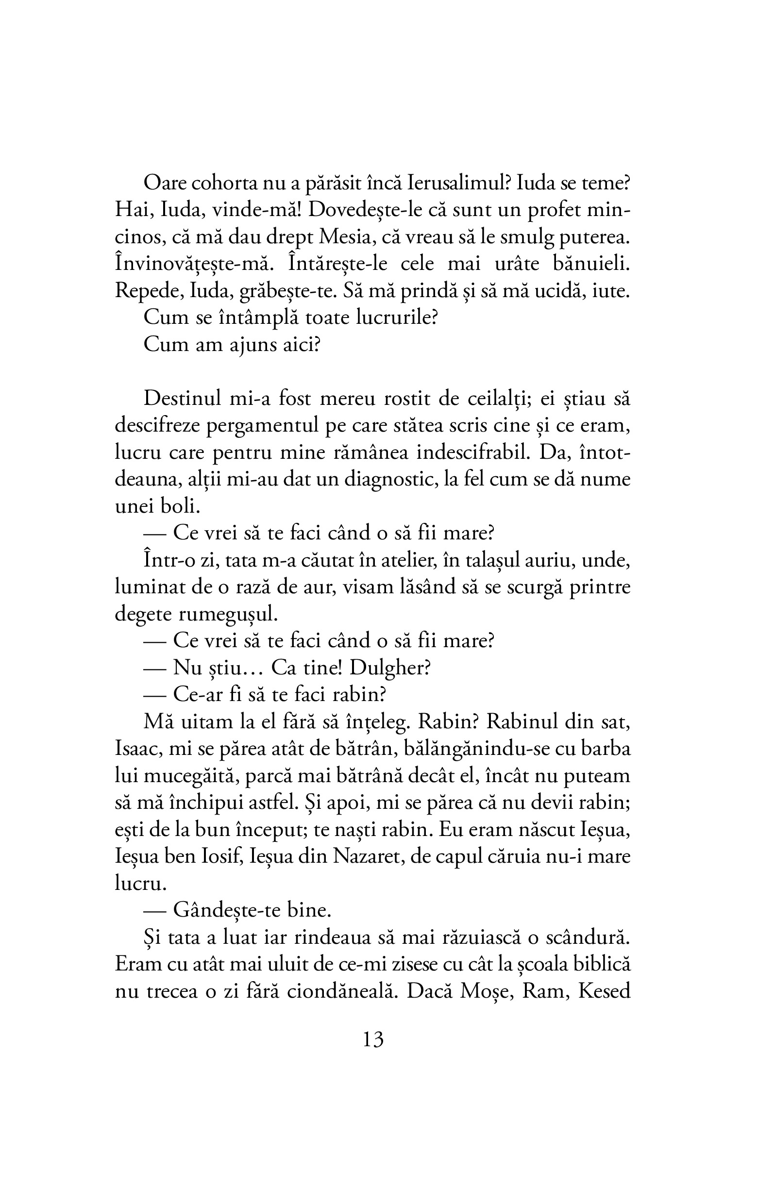 Astfel începe călătoria lui Pilat: ca o anchetă. Reprezentantul Romei și al ordinii adună mărturii și respinge sau demonstrează teorii și ipoteze. Însă treptat rațiunea începe să șovăie și trebuie să se plece în fața evidenței. Pilat nu se află în fața unei enigme, ci a unui mister mai înalt. Pilat nu-l poate dezlega. Îi mai rămâne doar să se îndoiască.