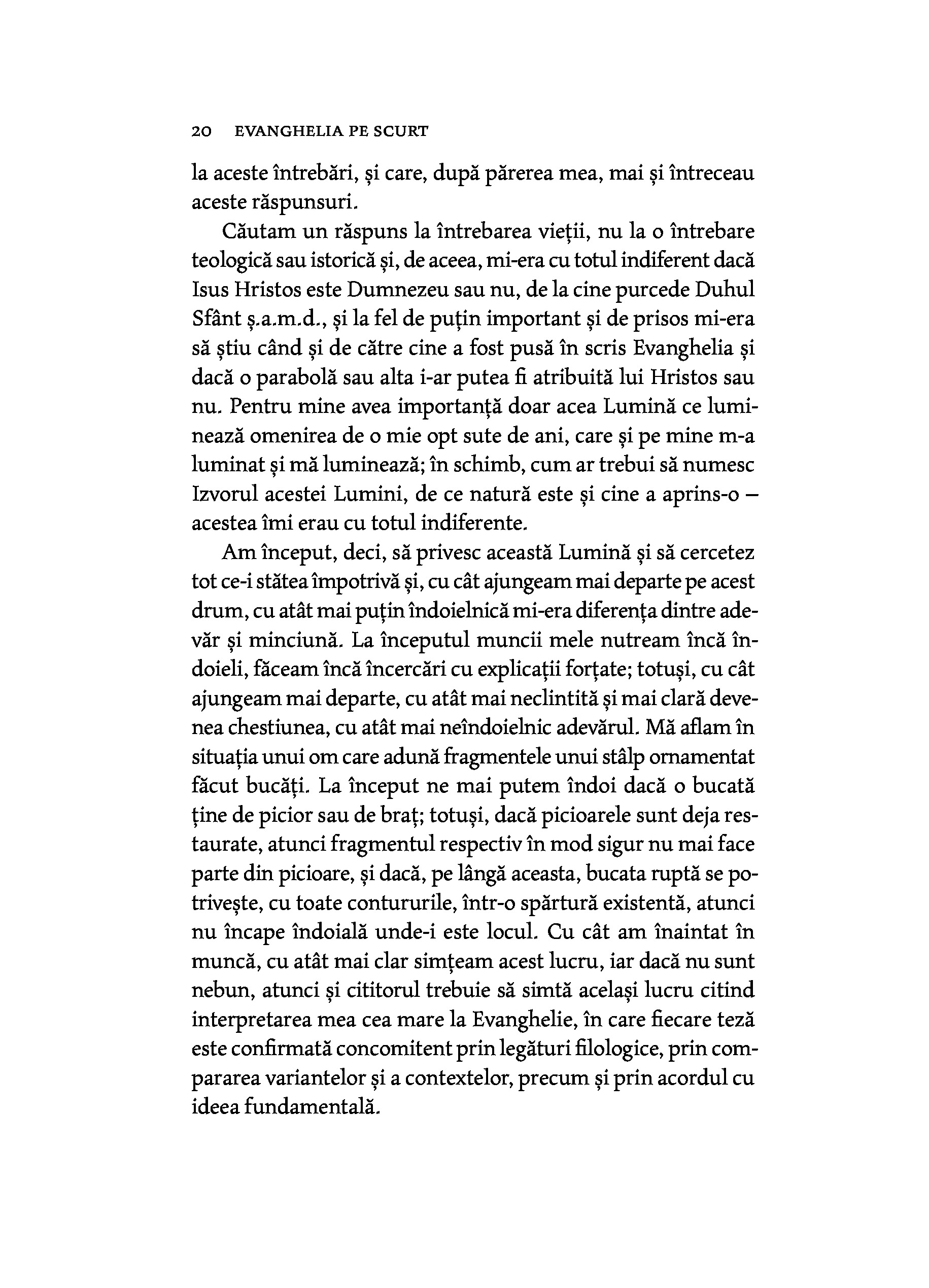 „Ai citit Evanghelia pe scurt a lui Tolstoi? Aş putea spune că, la vremea ei, cartea asta m-a ţinut în viaţă. Dacă n-o ştii, atunci n-ai cum să-nţelegi ce înrâurire poate avea asupra cuiva.“ — LUDWIG WITTGENSTEIN, corespondenţă)
