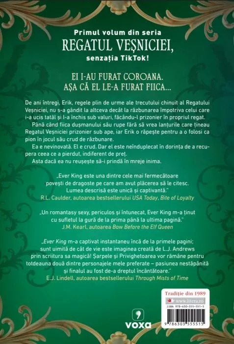„Ever King m-a captivat instantaneu încă de la primele pagini; sunt uimită de cât de vie este imaginea creată de L.J. Andrews prin scriitura sa magică! Șarpele și Privighetoarea vor rămâne pentru totdeauna două dintre personajele mele preferate – pasiunea nestăpânită și finalul au fost de-a dreptul încântătoare.“ E.J. Lindell, autoarea bestsellerului Through Mists of Time