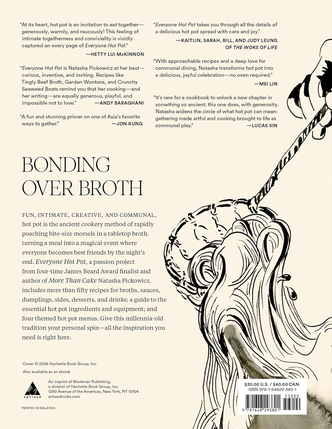 Hot pot is the ancient East Asian cookery method of rapidly poaching bite-size morsels of fresh vegetables, meats, seafood, and tofu in a tableside broth. This communal way of eating is perfect for home dinner parties where guests become active participants in cooking the meal. Though the hot pot table symbolizes bounty and feasting, at its core is frugality and thrift and accessibility to anyone. Four-time James Beard Award nominated chef Natasha Pickowicz provides more than fifty recipes for the broths, dumplings, sides, desserts, and drinks, along with a guide to the essential hot pot ingredients, equipment and tools, plus an explanation on how to pull it all together. Recipes include essential hot pot accompaniments, such as: