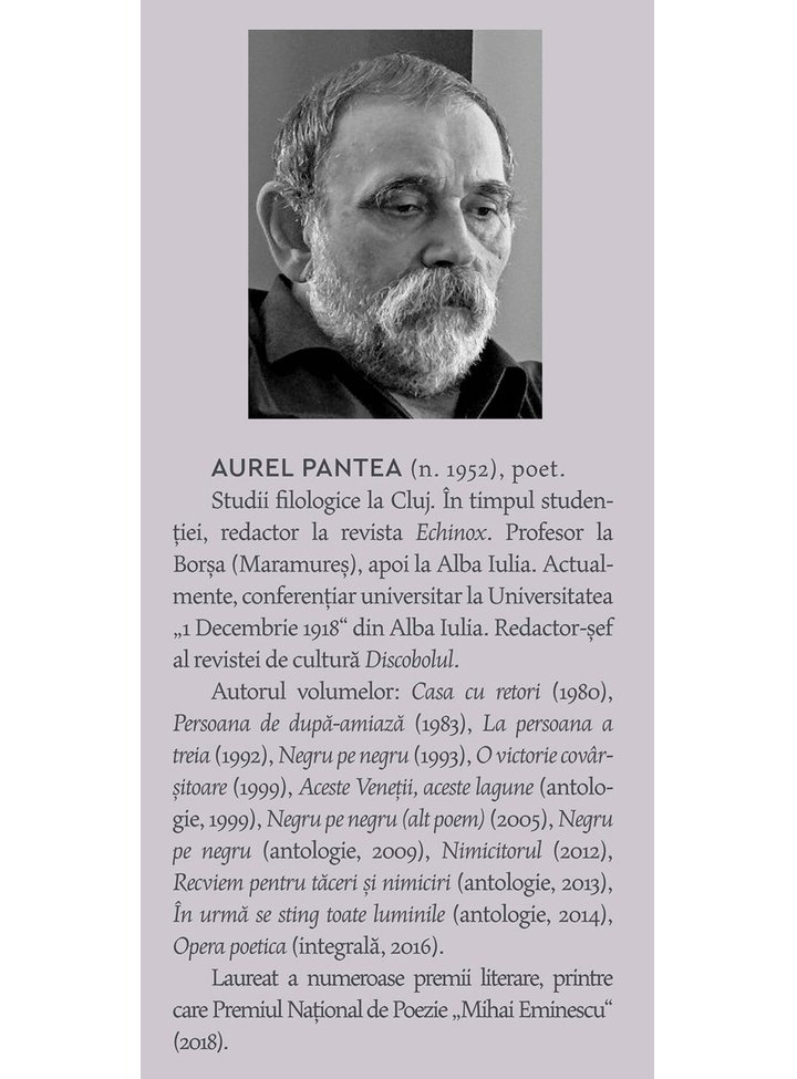 Aurel Pantea e ultimul taliban al modernismului, ultimul dispreţuitor făţiş de cititori (contând şi el, fireşte, pe faptul că dispreţul incită, stârneşte; că poate fi, aşadar, o strategie negativă de seducţie, prin respingere, prin ignorare, prin descurajare). El nu vorbeşte trăgând cu un ochi la cititor şi cu altul la vedeniile din faţă, ci cu ambii ochi aţintiţi fix şi febril la vedenie. Al. Cistelecan