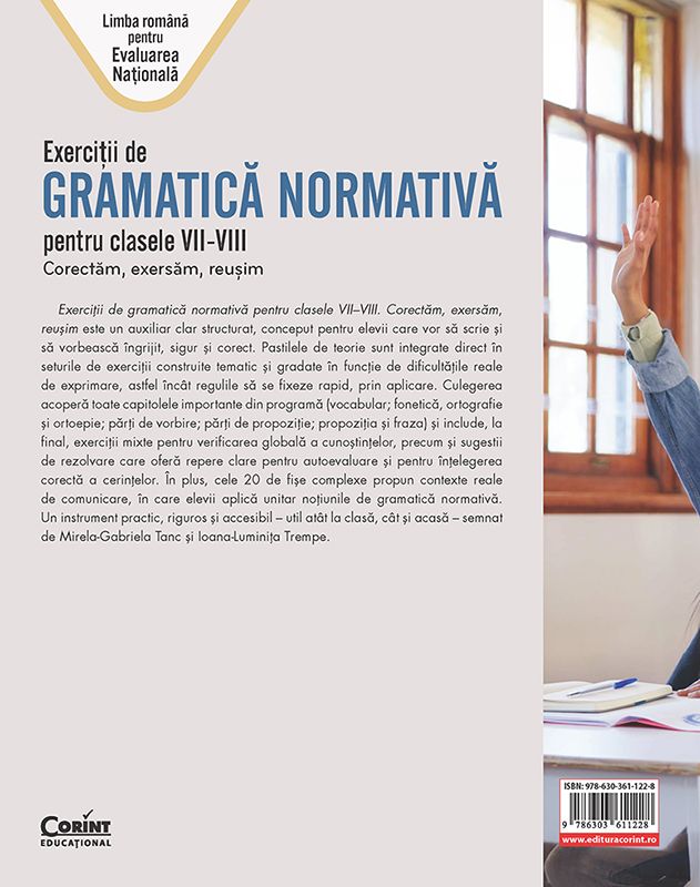 Auxiliarul didactic Exerciții de gramatică normativă pentru clasele VII–VIII. Corectăm, exersăm, reușim este un instrument esențial pentru toți cei care vor să stăpânească corect limba română și să obțină rezultate excelente la examenul de Evaluare Națională.