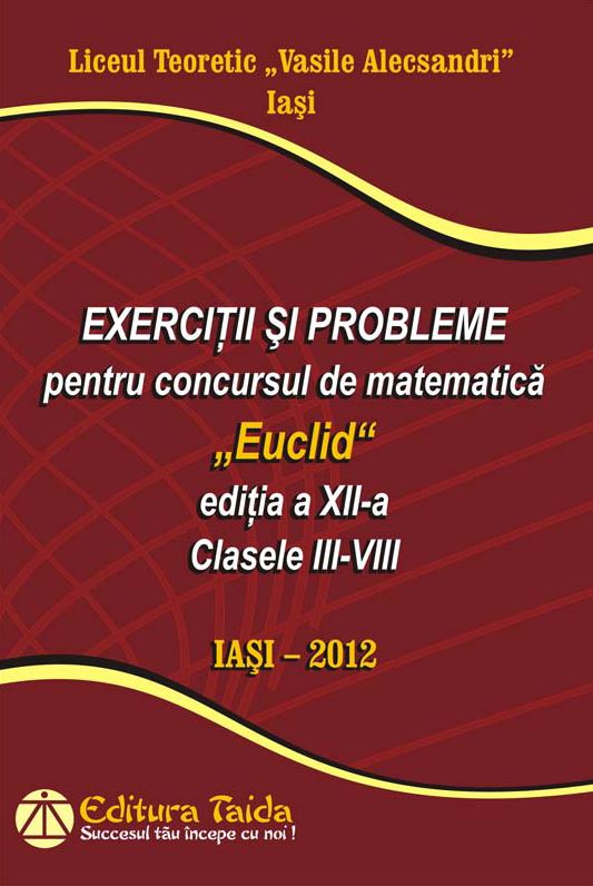 Concursul de matematică EUCLID a luat fiinţă în anul 2001, la iniţiativa profesorilor de matematică de la Liceul Teoretic ?Vasile Alecsandri? din Iaşi. Denumirea acestuia provine de la numele celebrului matematician grec care a pus bazele geometriei plane şi spaţiale şi ale aritmeticii. Însemnata sa operă, Elemente, alcătuită din 13 capitole a constituit, timp de două milenii, cartea de căpătâi după care s-a predat matematica. A fost tradusă în aproximativ 300 de limbi, fiind cea mai citită carte din lume.