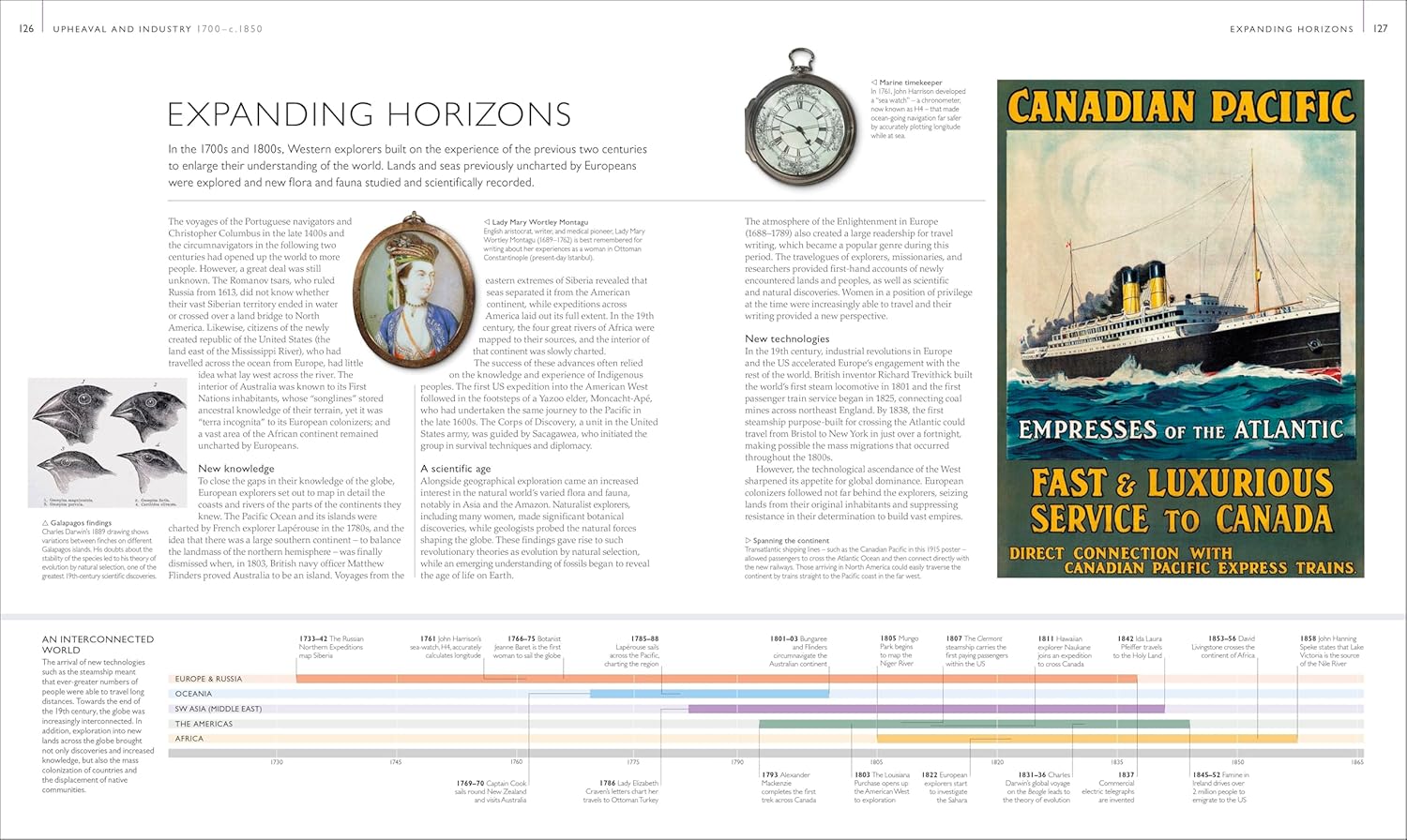 The voyages of history's greatest explorers - from Zheng He to Ibn Battuta and Marco Polo - are brought to vivid life with accompanying photos, illustrations, and original artefacts, along with recent missions to chart the depths of the oceans and the surface of Mars. And entries also explore the experiences of established Indigenous groups and the impact of settler populations.