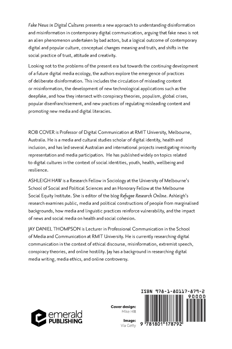 Fake News in Digital Cultures presents a new approach to understanding disinformation and misinformation in contemporary digital communication, arguing that fake news is not an alien phenomenon undertaken by bad actors, but a logical outcome of contemporary digital and popular culture, conceptual changes meaning and truth, and shifts in the social practice of trust, attitude and creativity.