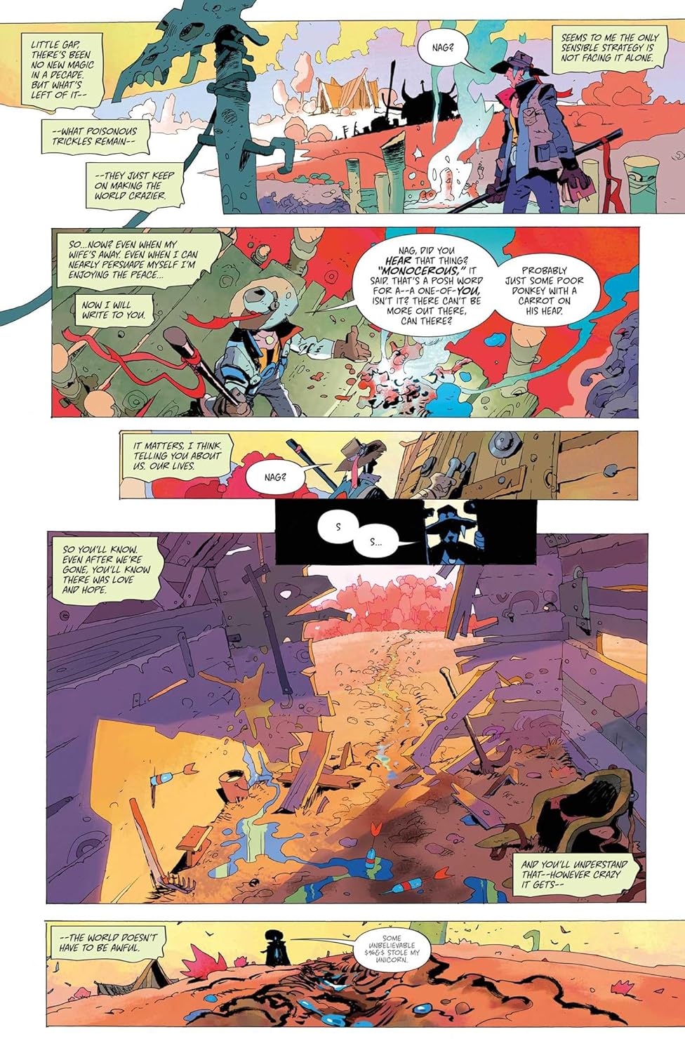 In the long-awaited return to the Eisner Award-nominated apocalyptic fantasy world of Coda, the disheartened bard Hum finds a slice of tranquility with his wife, Serka, in an ever-darkening, magic-less apocalypse - or so it seems. Prophecies of paradise and the return of magic?