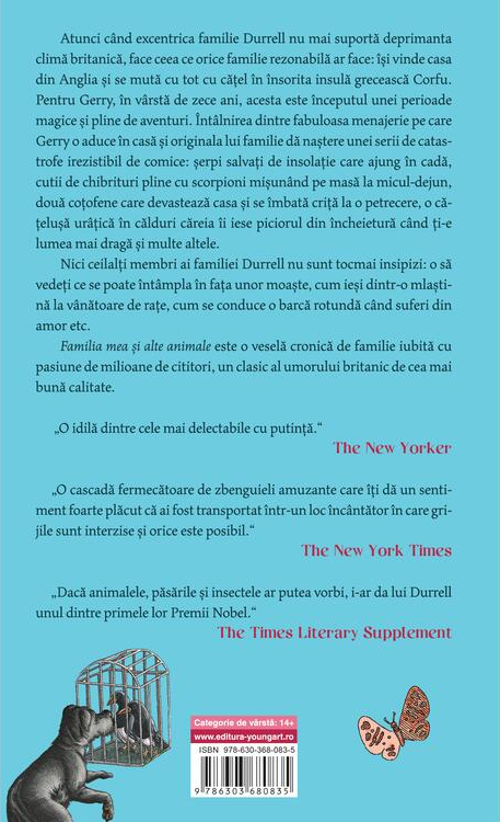 Familia mea și alte animale este o veselă cronică de familie, iubită cu pasiune de milioane de cititori, un clasic al umorului britanic de cea mai bună calitate.