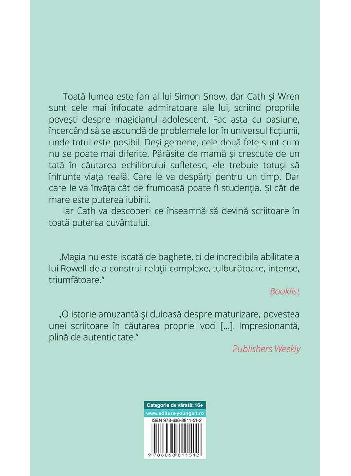 Toată lumea este fan al lui Simon Snow, dar Cath și Wren sunt cele mai înfocate admiratoare ale lui, scriind propriile povești despre magicianul adolescent. Fac asta cu pasiune, încercând să se ascundă de problemele lor în universul ficțiunii, unde totul este posibil. Deşi gemene, cele două fete sunt cum nu se poate mai diferite. Părăsite de mamă și crescute de un tată în căutarea echilibrului sufletesc, ele trebuie totuşi să înfrunte viaţa reală. Care le va despărţi pentru un timp. Dar care le va învăţa cât de frumoasă poate fi studenția. Și cât de mare este puterea iubirii.