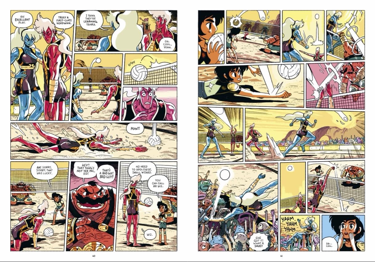 Wiz and Mug's adventure continues as a teleportation spell accidentally drops them off in a ruined beach town. A mysterious tournament and the town's amphibious inhabitants confront Wiz and Mug with the revelation that the United Order of Mages may not be exactly what it seems. In order to fulfill their mission, however, they're going to have to abide by the ancient law of the land and better their opponent in a game of beach volleyball! The question is, can they trust each other and work together to defeat the great and powerful volleyball champions Yahma and Yahmi?