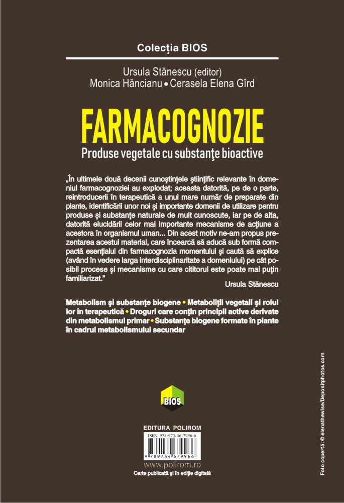 „În ultimele două decenii cunoștințele științific relevante în domeniul farmacognoziei au explodat; aceasta datorită, pe de o parte, reintroducerii în terapeutică a unui mare număr de preparate din plante, identificării unor noi și importante domenii de utilizare pentru produse și substanțe naturale de mult cunoscute, iar pe de alta, datorită elucidării celor mai importante mecanisme de acțiune a acestora în organismul uman... Din acest motiv ne-am propus prezentarea acestui material, care încearcă să aducă sub formă compactă esențialul din farmacognozia momentului și caută să explice (avînd în vedere larga interdisciplinaritate a domeniului) pe cît posibil procese și mecanisme cu care cititorul este poate mai puțin familiarizat.” (Ursula Stănescu)