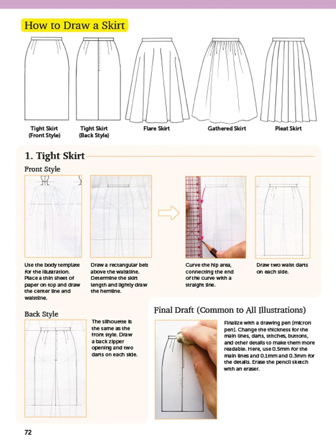 - Illustrating and Designing Clothes: Learn to draw a wide range of individual garments as well as stunning ensembles and accessories, including skirts, dresses, shirts, pants, jackets, shoes, bags, bras, panties and much more!