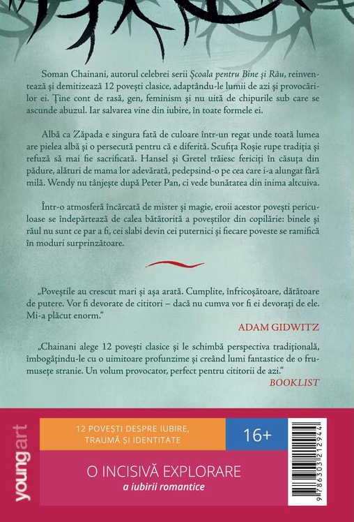 Soman Chainani, autorul celebrei serii Şcoala pentru Bine și Rău, reinventează şi demitizează 12 poveşti clasice, adaptându-le lumii de azi și provocărilor ei. Ține cont de rasă, gen, feminism și nu uită de chipurile sub care se ascunde abuzul. Iar salvarea vine din iubire, în toate formele ei.