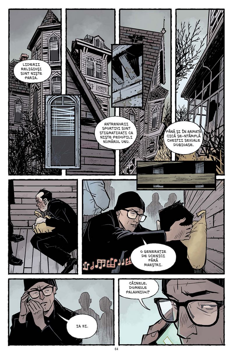 Fight Club 2 al lui Chuck Palahniuk este în aceeaşi măsură o lectură stimulatoare şi un moment esenţial pentru industria benzilor desenate, marcînd un debut cross-media de o asemenea valoare literară. Sîntem urechile ciulite ale lui Jack. (Paste)