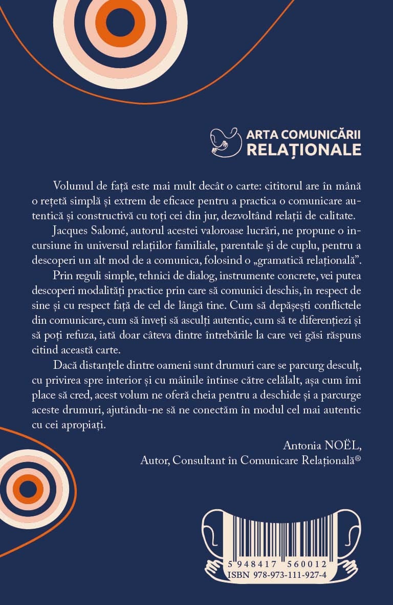 Jacques Salomé, autorul acestei valoroase lucrari, ne propune o incursiune in universul relatiilor familiale, parentale si de cuplu, pentru a descoperi un alt mod de a comunica, folosind o „gramatica relationala”.