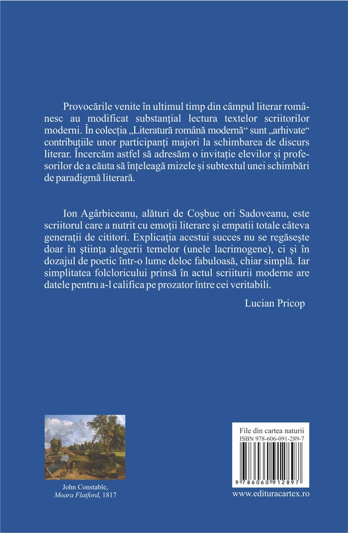 Ion Agarbiceanu – alaturi de Cosbuc ori Sadoveanu – este scriitorul care a nutrit cu emotii literare si empatii totale cateva generatii de cititori. Explicatia acestui succes nu se regaseste doar in stiinta alegerii temelor (unele lacrimogene), ci si in dozajul de poetic intr-o lume deloc fabuloasa, chiar simpla. Iar simplitatea folcloricului prinsa in actul scriiturii moderne are datele pentru a-l califica pe prozator intre cei veritabili.