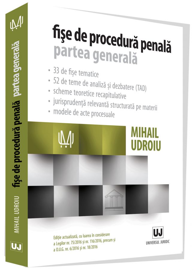 Dupa patru ani de la apariția primei ediții a fișelor de PROCEDURA PENALA, anul 2016 marcheaza o restructurare fundamentala a lucrarii, in lumina noilor modificari legislative (legi, ordonanțe, inclusiv O.U.G. nr. 18/2016).