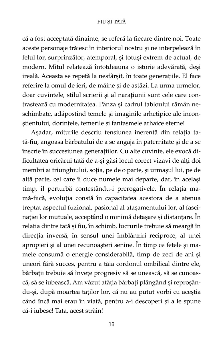 Cele trei mituri sunt, de fapt, adevărate lecții de psihologie care ne pot ajuta să ne restabilim triunghiurile familiale devenite, în ultimele decenii mai ales, scena multor tulburări sufletești.