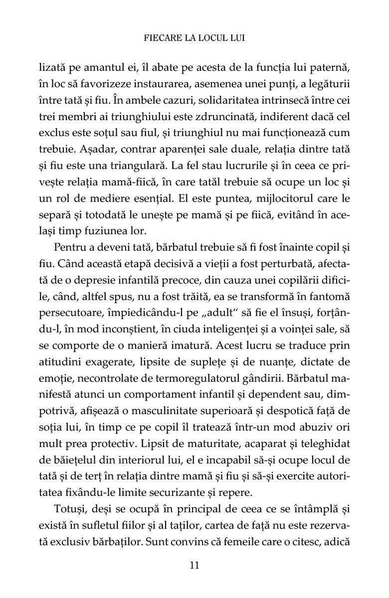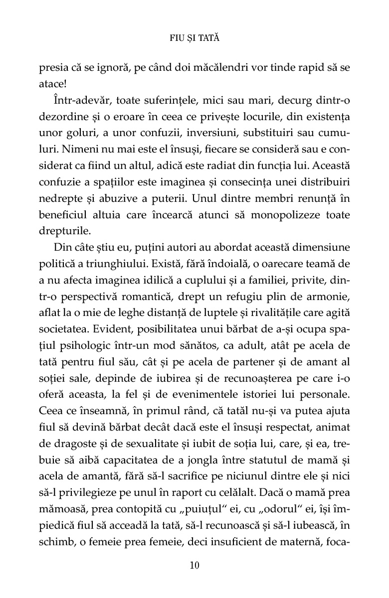 Intrând în acest univers simbolic înțelegem că, de fapt, ceea ce va deveni fiul depinde în mare parte de prezența unui tată adult, capabil să‑și ocupe locul în familie. Când tatăl lipsește, fiul riscă să se confrunte cu dificultăți serioase în evoluția sa, fiindu-i greu să se integreze mai târziu în viață și în societate, atât din punct de vedere afectiv, cât și profesional.