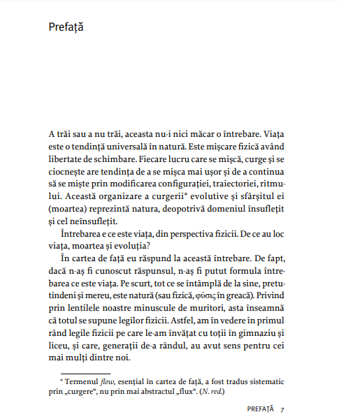 „Acum e rândul filozofilor științei, istoricilor științei, scriitorilor și artiștilor, cei care văd imaginea de ansamblu, să explice publicului ce înseamnă ideea de «viață și evoluție ca fizică», de ce e utilă, de cât timp curge și de unde a izvorât. Am subliniat acest lucru de fiecare dată când am citat spusele celor din trecut. Pentru a înlesni această curgere particulară a cunoașterii am scris cartea de față.“ — ADRIAN BEJAN