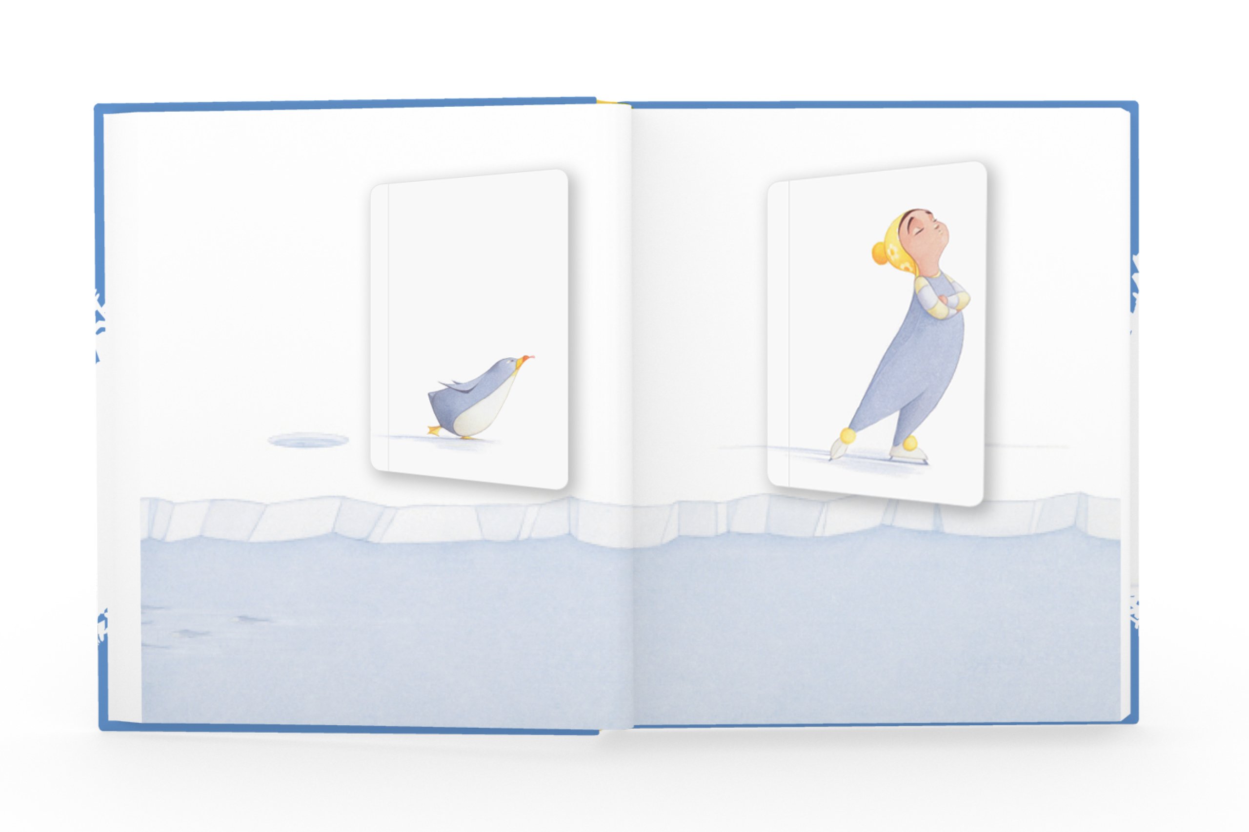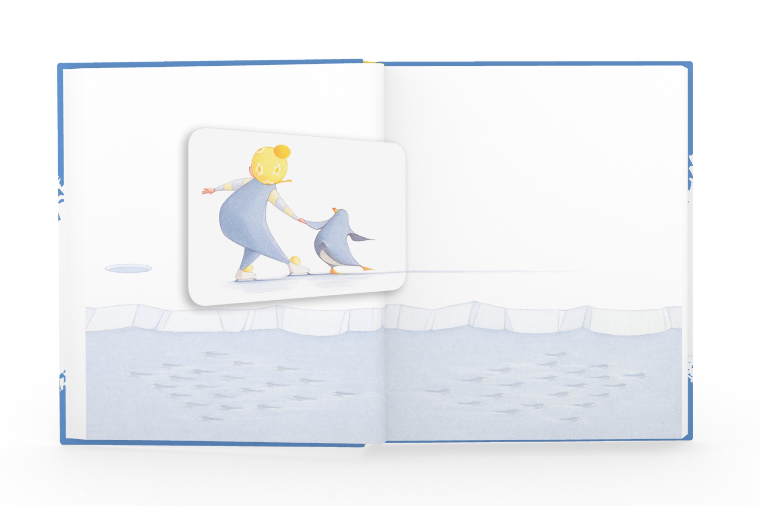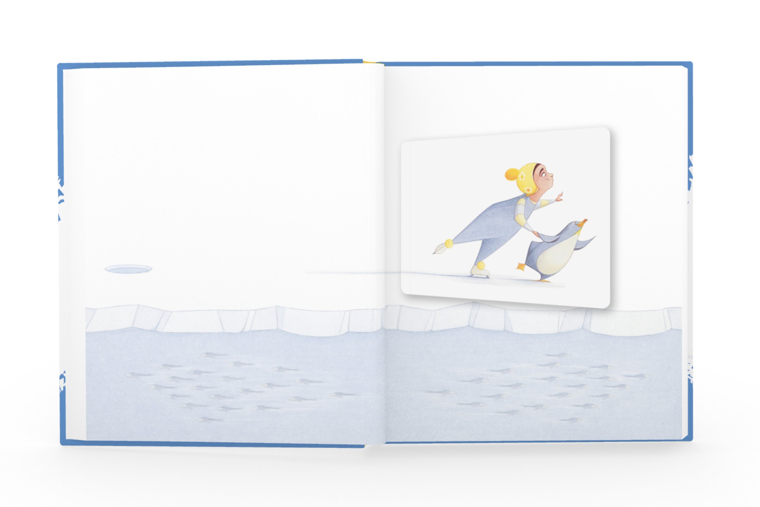 Having mastered ballet in Flora and the Flamingo, Flora takes to the ice and forms an unexpected friendship with a penguin. Twirling, leaping, spinning and gliding, on skates and flippers, the duo mirror each other's graceful dance above and below the ice. But when Flora gives the penguin the cold shoulder, the pair must figure out a way to work together for uplifting results. Artist Molly Idle creates an innovative, wordless picture book with clever flaps that reveal Flora and the penguin coming together, spiralling apart and coming back together as only true friends do.