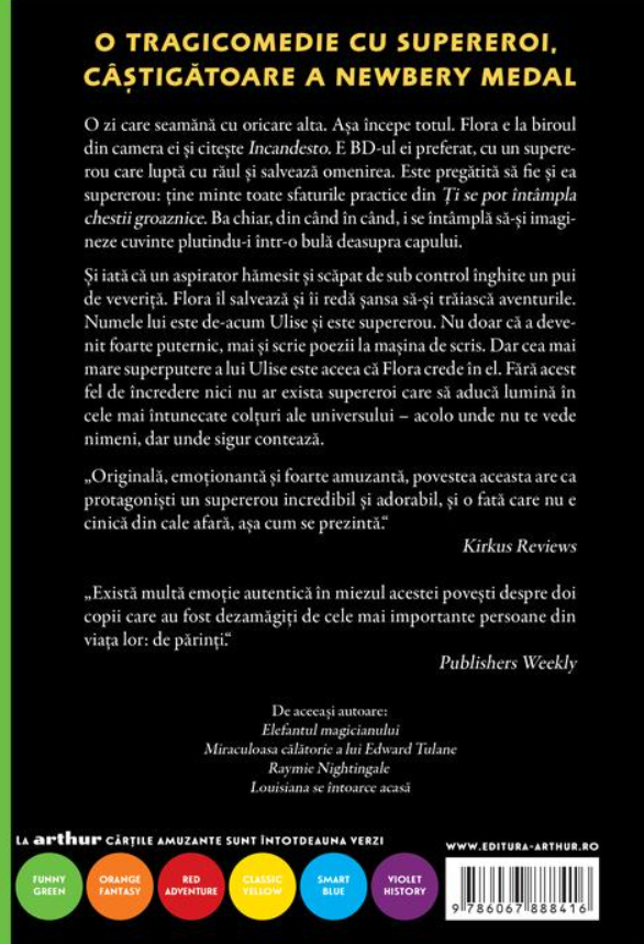 „Flora și Ulise” de Kate DiCamillo este o aventură plină de umor și sensibilitate despre prietenie, empatie și supereroi neașteptați.