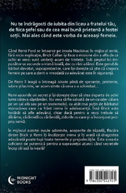 Când Remi Ford se întoarce pe insula Mackinac în mijlocul iernii, fără nicio explicație, Brick Callan își face o misiune din a afla de ce ochii ei verzi sunt umbriți acum de tristețe. Sub pieptul lui impunător se ascunde o inimă loială, dar cu răni adânci. Este genul de bărbat devotat, supraprotector, care își dorește să știe că singura femeie pe care a dorit-o vreodată cu adevărat este în siguranță. Îl leagă de Remi o întreagă istorie plină de speranțe, prietenie, iubire și lacrimi, iar acum simte că ceva s-a schimbat...