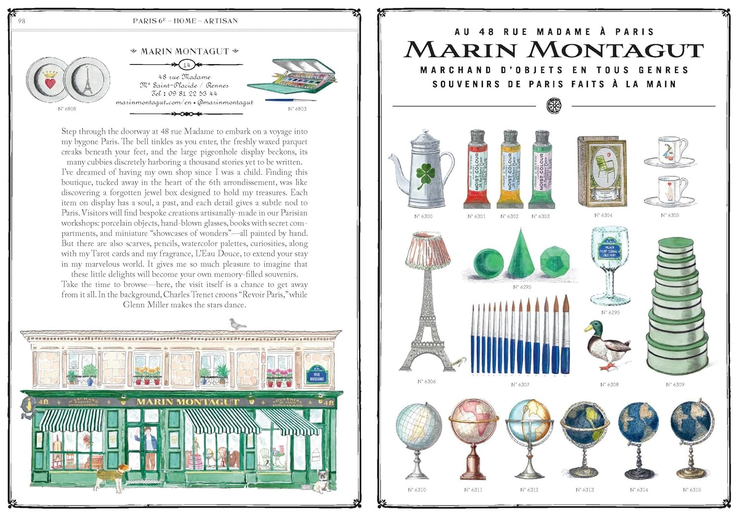 To discover every beguiling corner of Paris like a local, follow Marin Montagut to his favourite places; in operation for thirty years or more, these addresses define what makes the city so captivating. His adorable watercolours, accompanied by drawings from antique mercantile stock lists, bring each location to life. Reminiscent of a golden-age-of-travel guide, this book features gilt edging, foil stamping, a leatherette cover, marbled endpapers, a ribbon page marker, and maps.