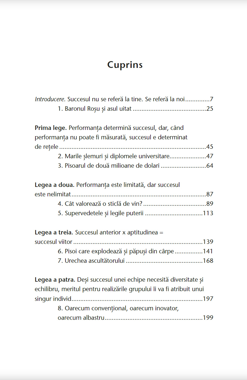 De multe ori, realizările înseamnă că avem succes. Ne-am făcut treaba cu simţul răspunderii, suntem angajați buni, dar nu obţinem promovarea. Am avut o idee genială, dar n-am primit recunoaşterea cuvenită. Deşi ni s-a spus că talentul combinat cu o puternică etică a muncii reprezintă cheia succesului, Barabási ne arată dăm seama că în multe cazuri nu este deloc aşa.