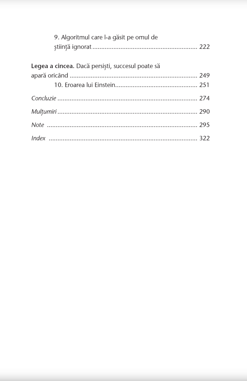 Dezvăluind legile succesului şi evidenţiind cât de importantă este validarea comunităţii pentru dobândirea lui, Barabási oferă o nouă înţelegerea a modului în care poţi excela în societatea de azi.