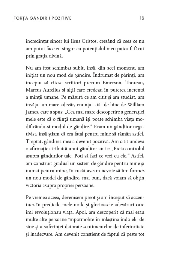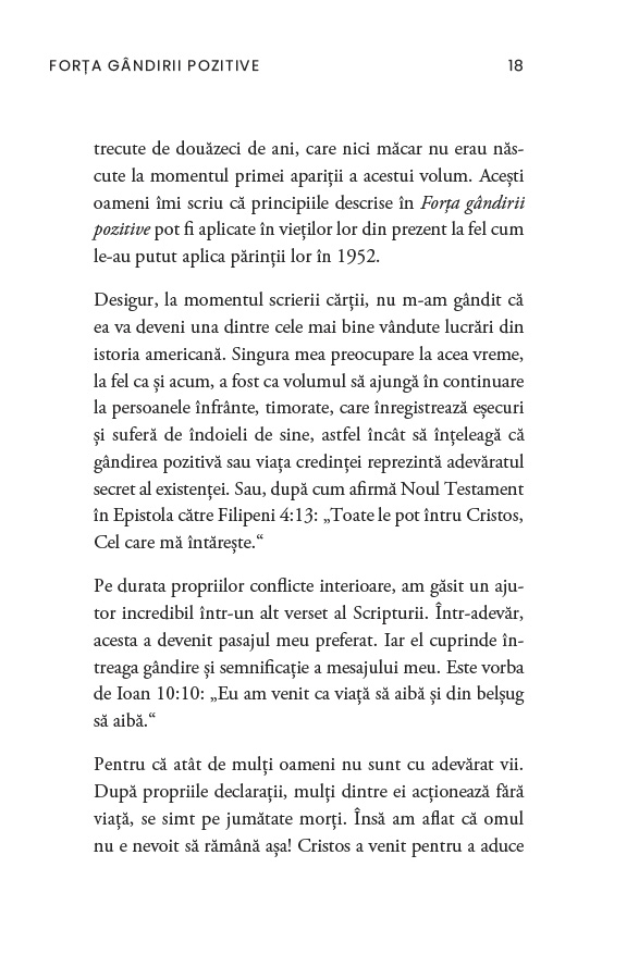 Forța gândirii pozitive este o demonstrație a puterii credinței – un bestseller extraordinar care a ajutat milioane de oameni să dobândească succesul, bucuria de a trăi și încrederea în sine.
