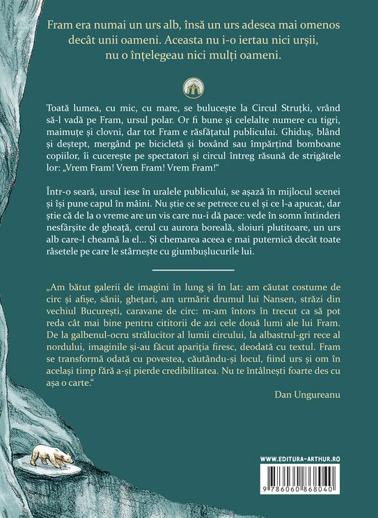 Fram se transformă odată cu povestea, căutându-și locul, fiind urs și om în același timp fără a-și pierde credibilitatea. Nu te întâlnești foarte des cu așa o carte.“ - Dan Ungureanu