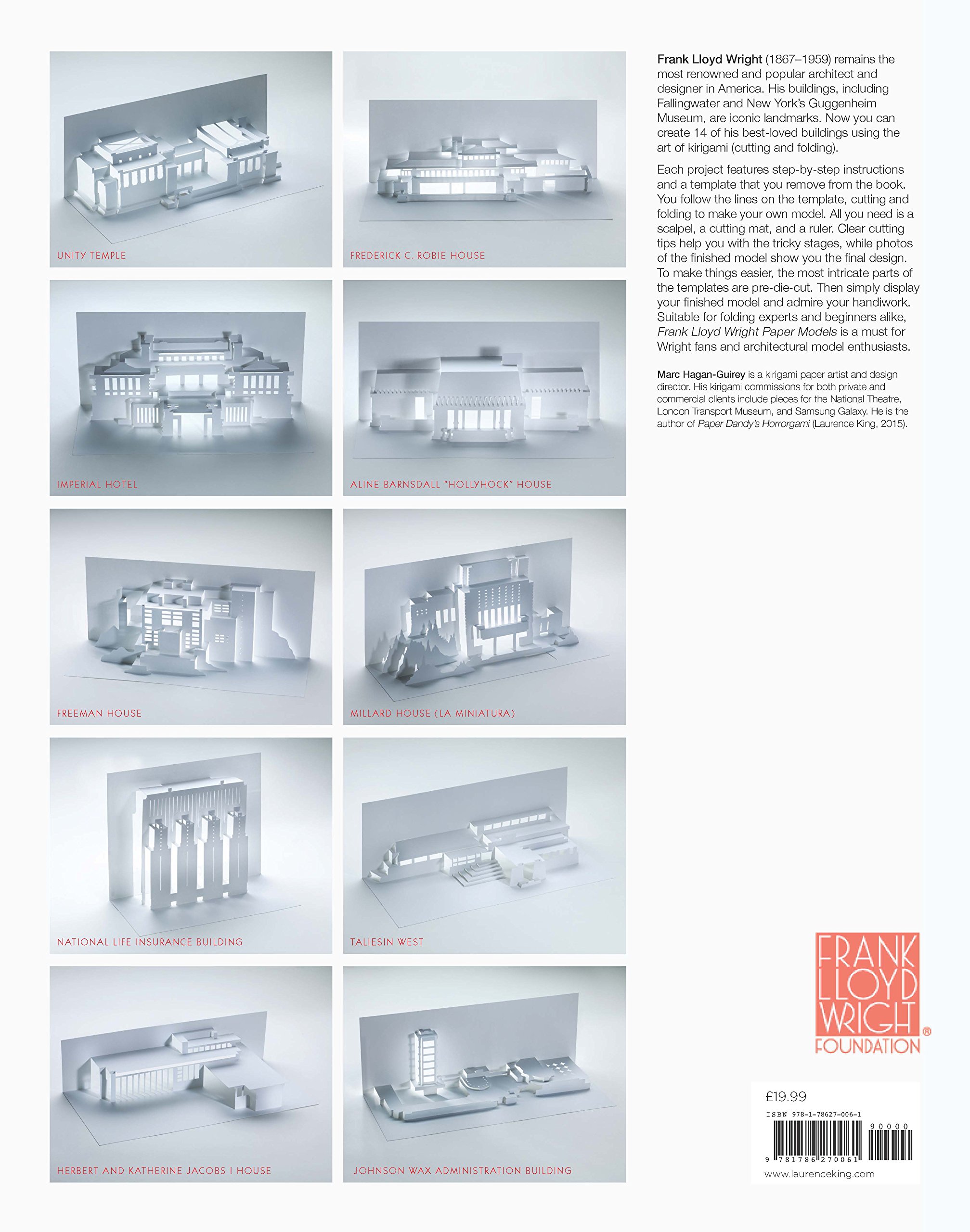 Frank Lloyd Wright (1867–1959) is the most renowned and popular architect and designer in America. His buildings, including Fallingwater and New York’s Guggenheim Museum, are iconic landmarks. Now you can create 14 of his best loved buildings using the art of kirigami (cutting and folding). Each project features step-by-step instructions and a template that you remove from the book. You follow the lines on the template, cutting and folding to make your own model. All you need is a scalpel, a cutting mat and a ruler. Clear cutting tips help you with the tricky stages, while photos of the finished model show you the final design. To make things easier, the most intricate parts of the templates are pre-die-cut. Then simply display your finished model and admire your handiwork.