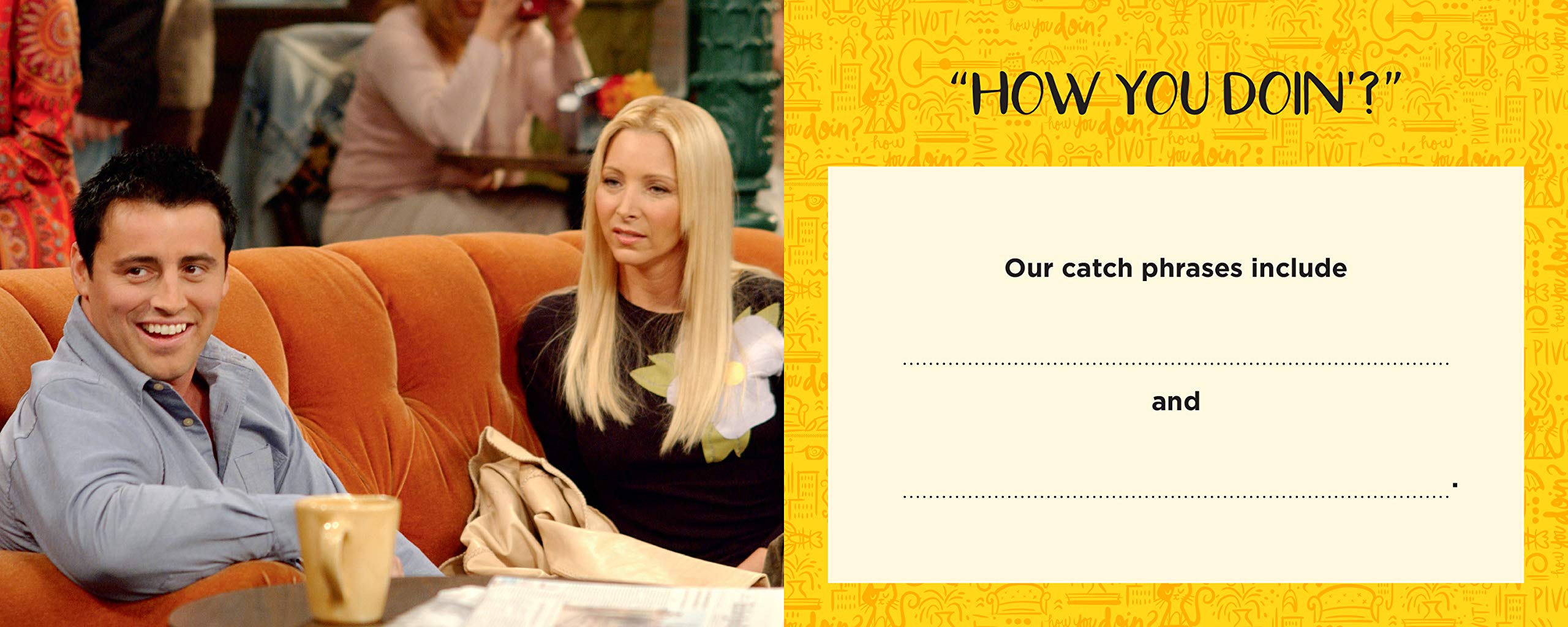 Whether or not your best pal has hair as awesome as Rachel, cooks like Monica, sings like Phoebe or is as smooth as Joey, this is the perfect way to let them know you're friends for life. Once you fill in the prompts, this book becomes a personalised gift full of ridiculous, memorable or sweet expressions of appreciation that are as quirky as your favourite friends. It's up to you!