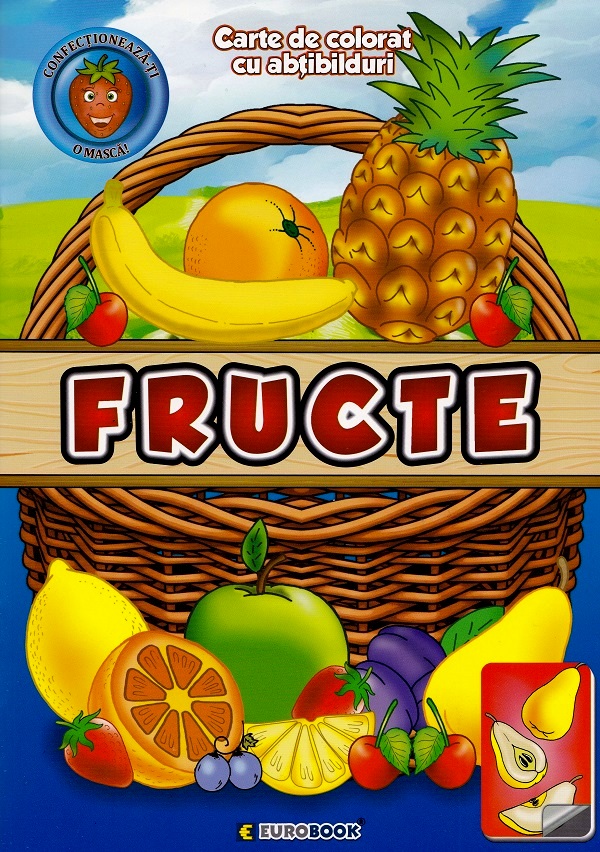 Carte de colorat cu informatii, cu desene clare, si text cu corp mare, cu pagini color oferite ca exemplu, pentru ca cei mici sa le poata citi, deslusi si colora.