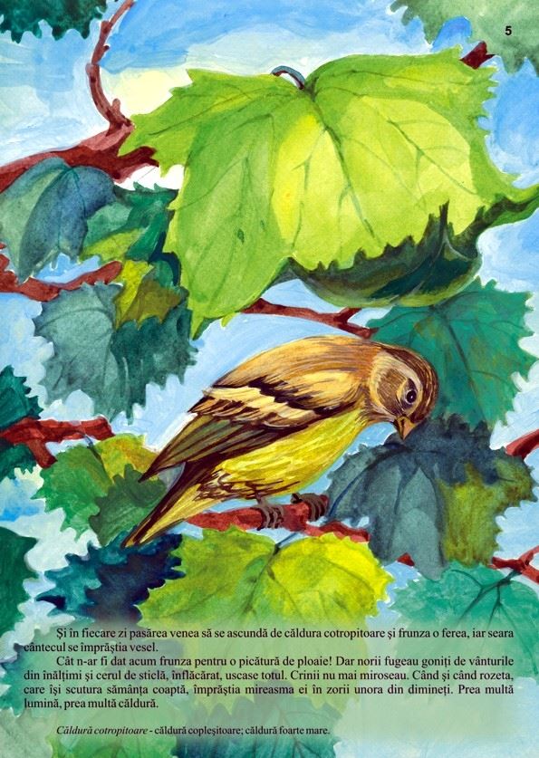 În povestirea "Frunza" este surprinsă viaţa unei frunze de când apare, cum creşte în razele soarelui, în picăturile de ploaie, dând adăpost unui scatiu. Frunza şi-a găsit sfârşitul lovită de aripa acestuia, soarta ei fiind o tristă ilustrare a proverbului "După ce a trecut căldura, nu-şi mai aminteşte de umbră". Cu emoţie şi parcă înlăcrimat, scriitorul redă contrastul dintre armonia şi tragedia naturii lăsându-ne să reflectăm asupra acestor aspecte. Autorul nu are intenţia de a ne instrui, dar citind o astfel de povestire, ne face să fim mai atenţi, mai înţelegători şi mai umani cu tot ce ne înconjoară.