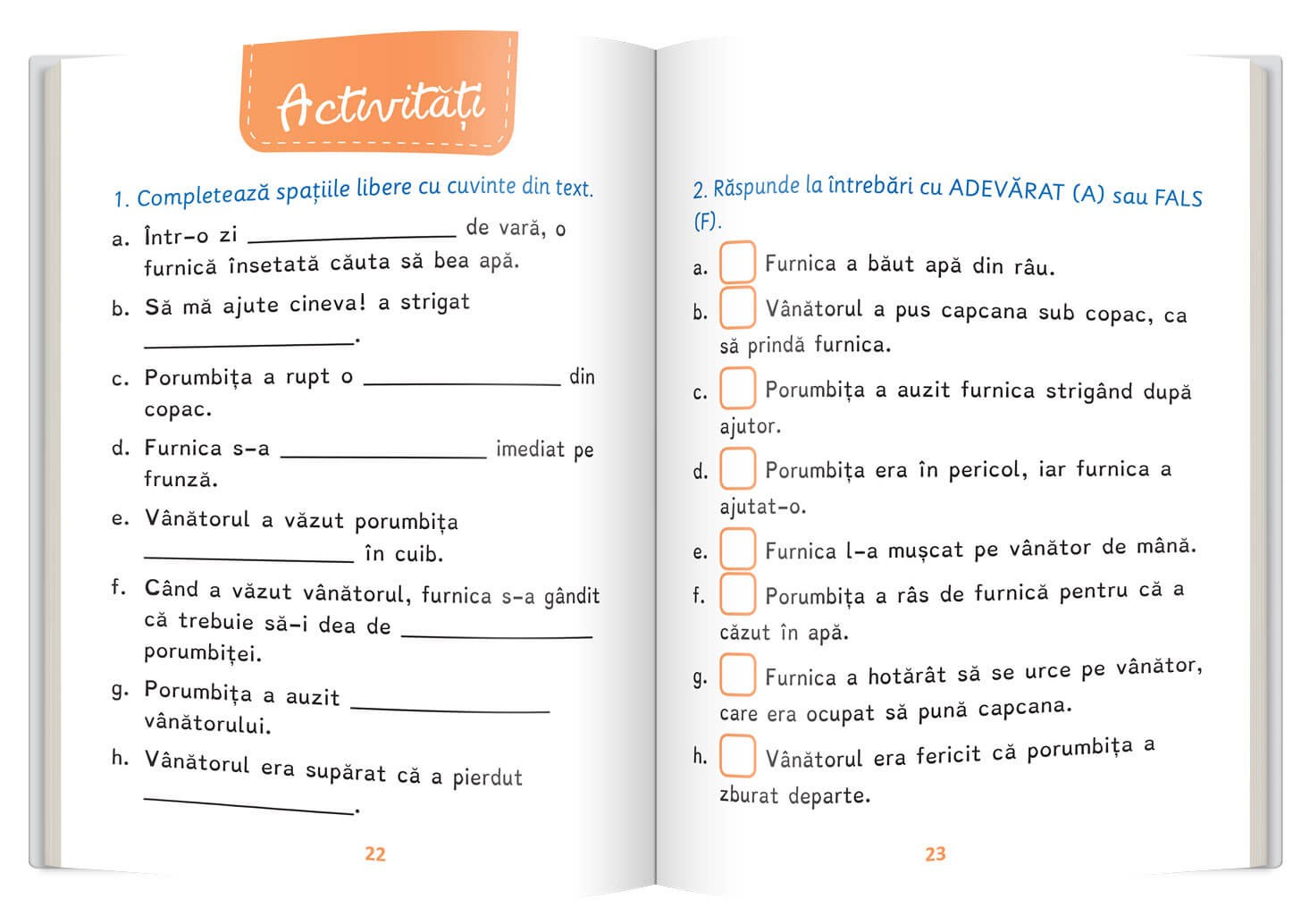 La sfârșitul cărții găsești exerciții de rezolvat după lectură, precum și un mic dicționar.