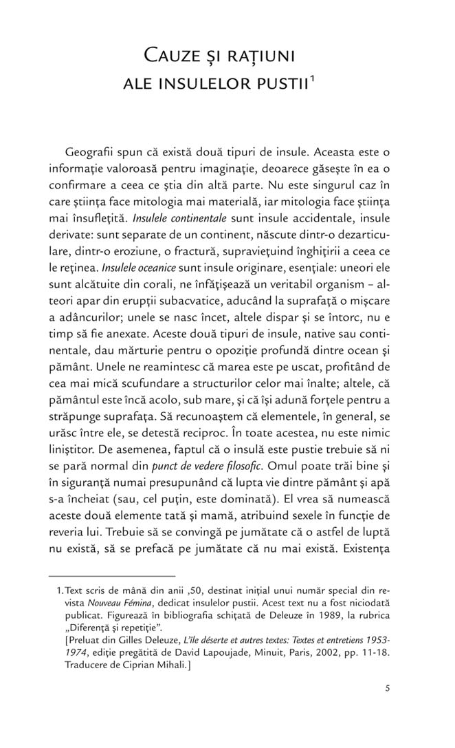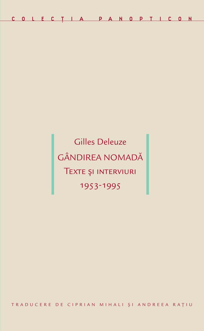 Gilles Deleuze (1925-1995) a predat filosofia vreme de mai bine de douăzeci de ani la Lyon și Paris, din 1964 până în 1987. Istoric al filosofiei, critic al psihanalizei și al capitalismului, teoretician al artei și al literaturii, Deleuze desfășoară în lucrările sale o gândire originală și complexă.