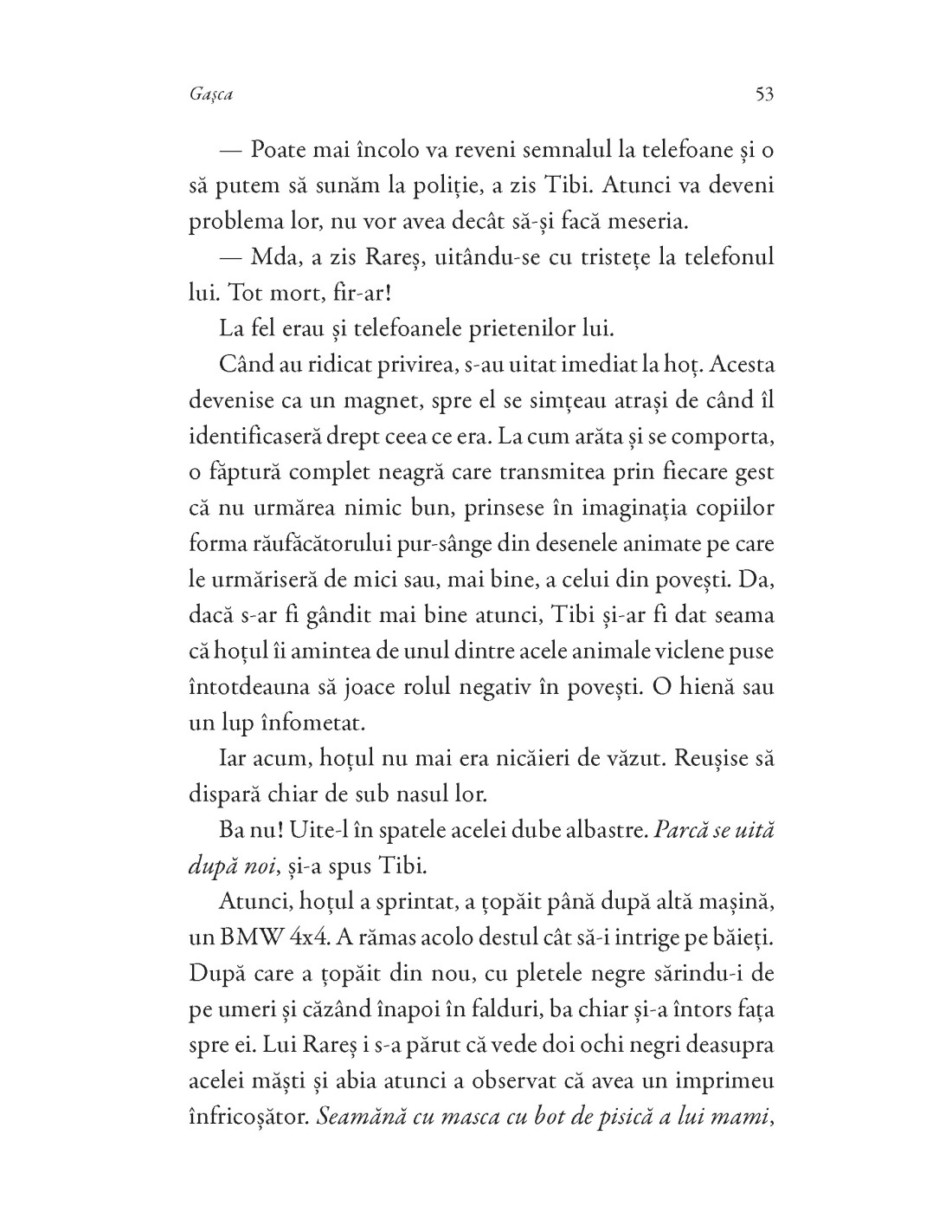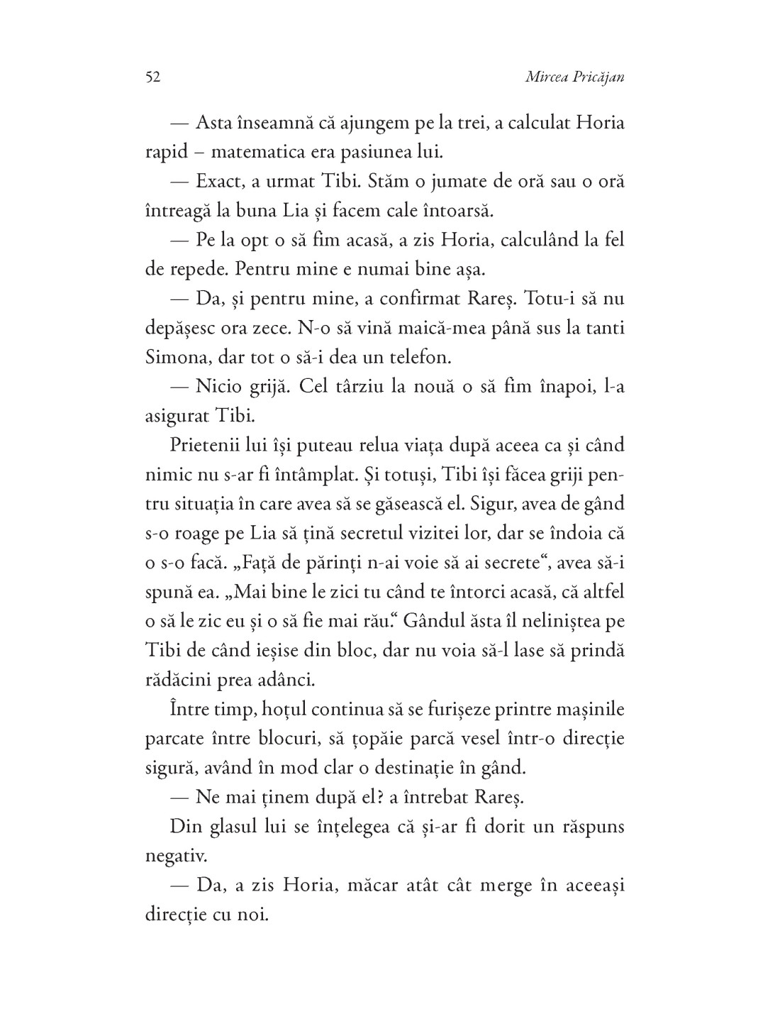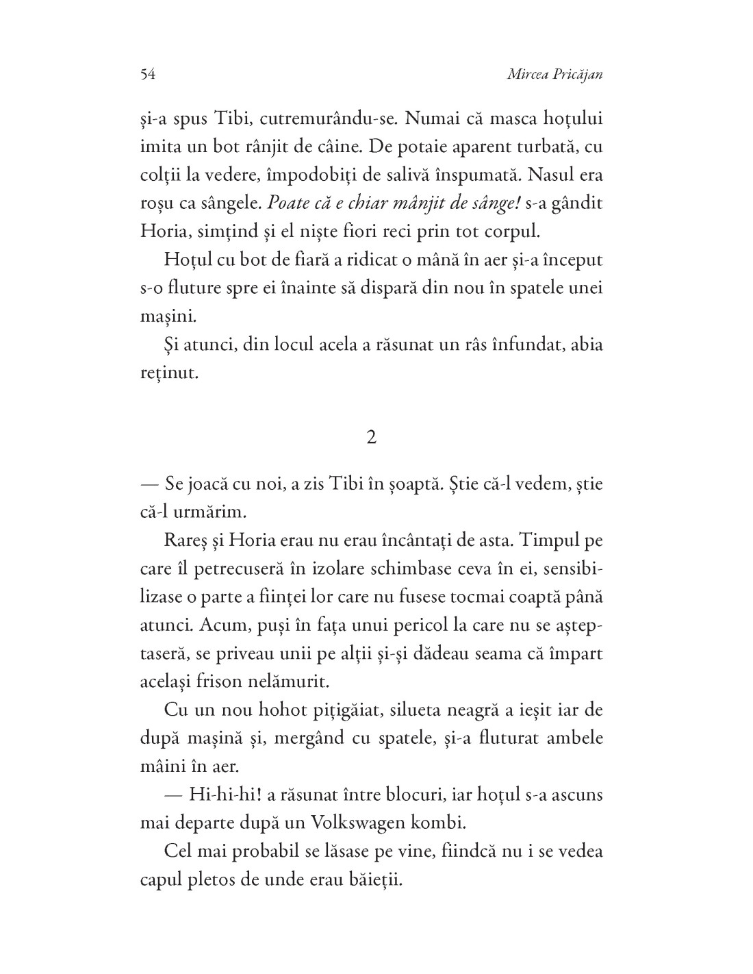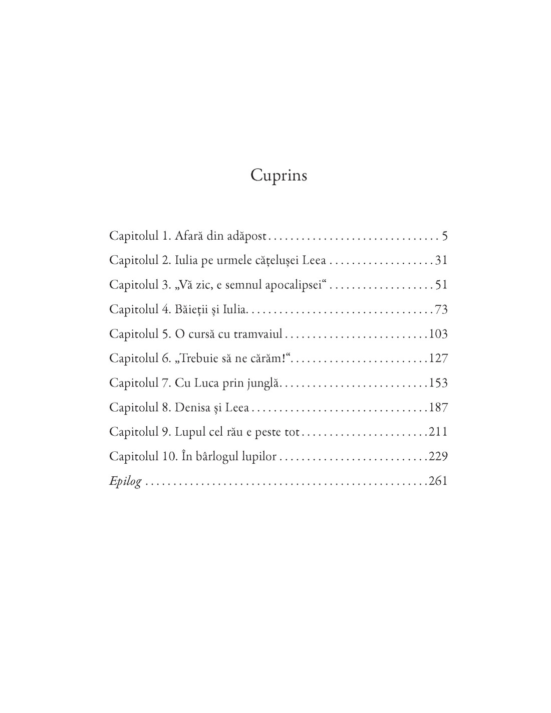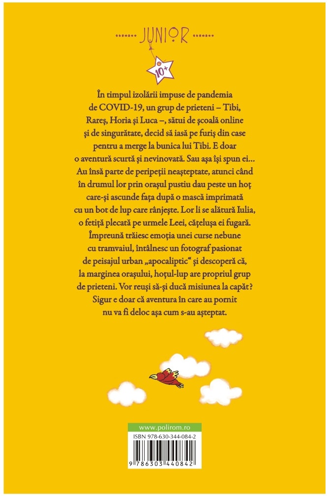 E doar o aventură scurtă și nevinovată. Sau așa își spun ei… Au însă parte de peripeţii neașteptate, atunci când în drumul lor prin orașul pustiu dau peste un hoţ care-și ascunde faţa după o mască imprimată cu un bot de lup care rânjește. Lor li se alătură Iulia, o fetiţă plecată pe urmele Leei, căţelușa ei fugară. Împreună trăiesc emoţia unei curse nebune cu tramvaiul, întâlnesc un fotograf pasionat de peisajul urban „apocalyptic” și descoperă că, la marginea orașului, hoţul-lup are propriul grup de prieteni.