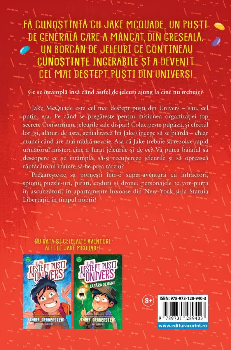 Jake McQuade este cel mai deștept puști din Univers – sau, cel puțin, era. Pe când se pregătește pentru misiunea organizației top secrete Consortium, jeleurile sale dispar! Colac peste pupăză, și efectul lor (și, alături de asta, genialitatea lui Jake) începe să se piardă – chiar atunci când are mai multă nevoie de ea. Așa că Jake trebuie să rezolve rapid următorul mister: cine a furat jeleurile și de ce? Va putea băiatul să descopere ce se întâmplă, să-și recupereze jeleurile și să oprească răufăcătorul înainte să fie prea târziu?