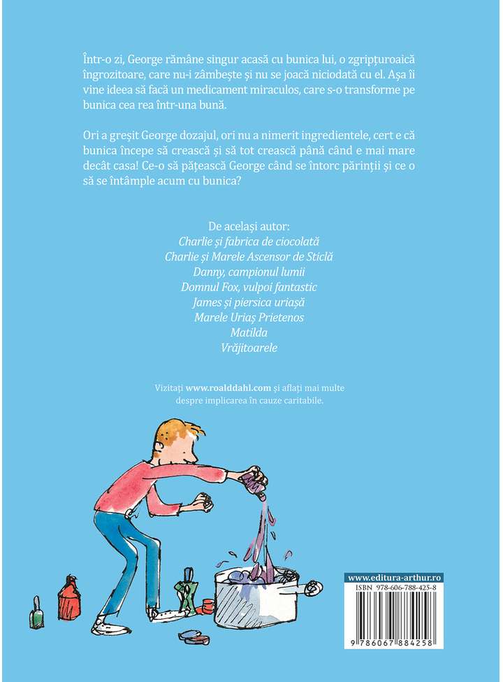 Într-o zi, George rămâne singur acasă cu bunica lui, o zgripțuroaică îngrozitoare, care nu-i zâmbește și nu se joacă niciodată cu el. Așa îi vine ideea să facă un medicament miraculos, care s-o transforme pe bunica rea într-una bună.