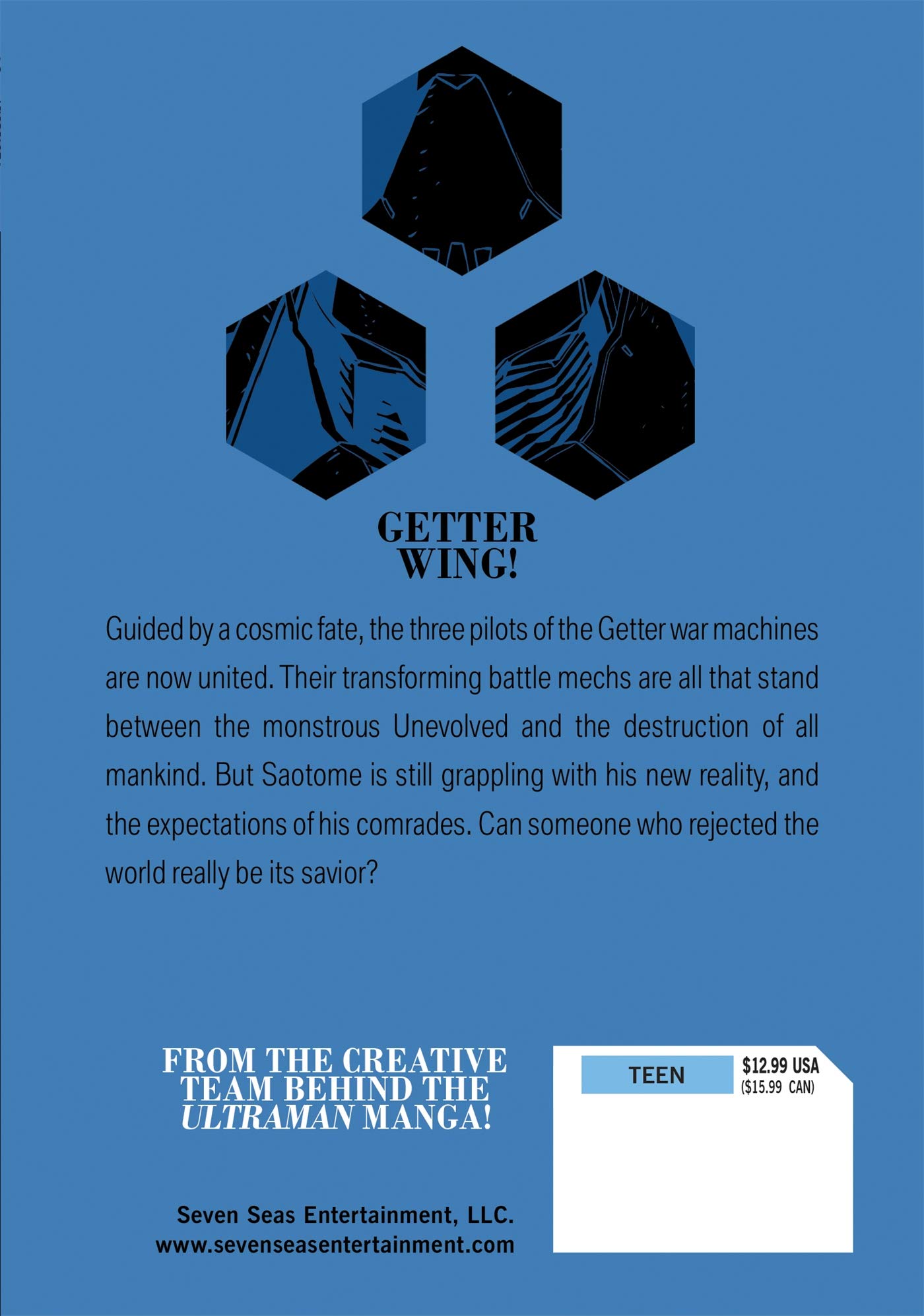 GETTER WING! Guided by a cosmic fate, the three pilots of the Getter war machines are now united. Their transforming battle mechs are all that stand between the monstrous Unevolved and the destruction of all mankind. But Saotome is still grappling with his new reality, and the expectations of his comrades. Can someone who rejected the world really be its savior?