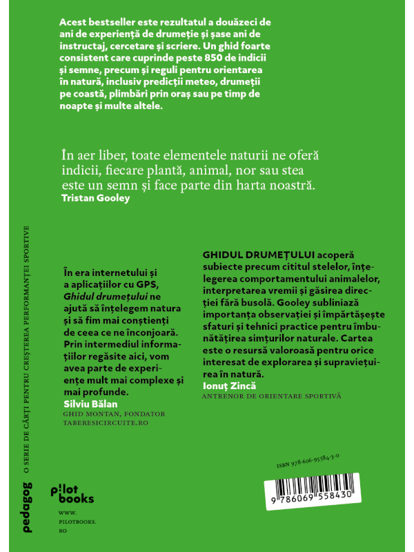 Acest bestseller este rezultatul a douăzeci de ani de experiență de drumeție și șase ani de instructaj, cercetare și scriere. Un ghid foarte consistent care cuprinde peste 850 de indicii și semne, precum și reguli pentru orientarea în natură, inclusiv predicții meteo, drumeții pe coastă, plimbări prin oraș sau pe timp de noapte și multe altele.