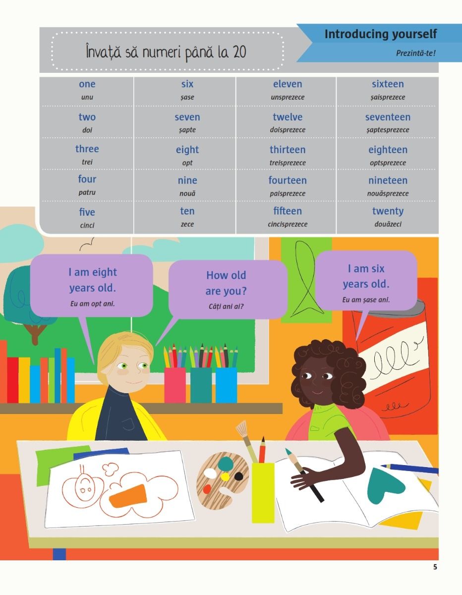 Cartea se adresează copiilor care fac primii paşi în studiul limbii engleze. Fiecare secţiune a acestui ghid este ilustrată în mod atractiv şi îi încurajează pe cei mici să fie entuziaşti şi încrezători atunci când asimilează cunoştinţele de bază ale limbii engleze. Învăţarea unor exemple simple, amuzante şi familiare îi va ajuta pe copii să dezvolte încă de timpuriu o pasiune pentru studiul acestei limbi străine.