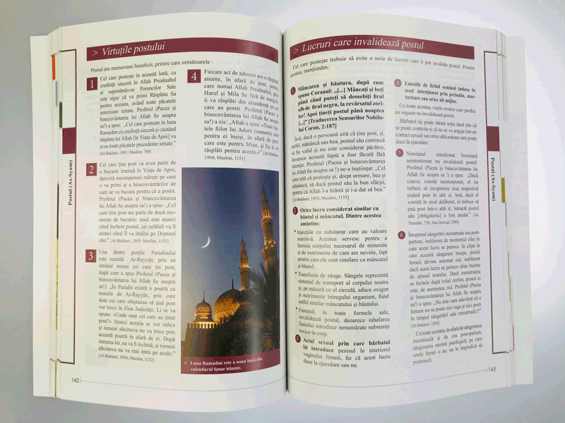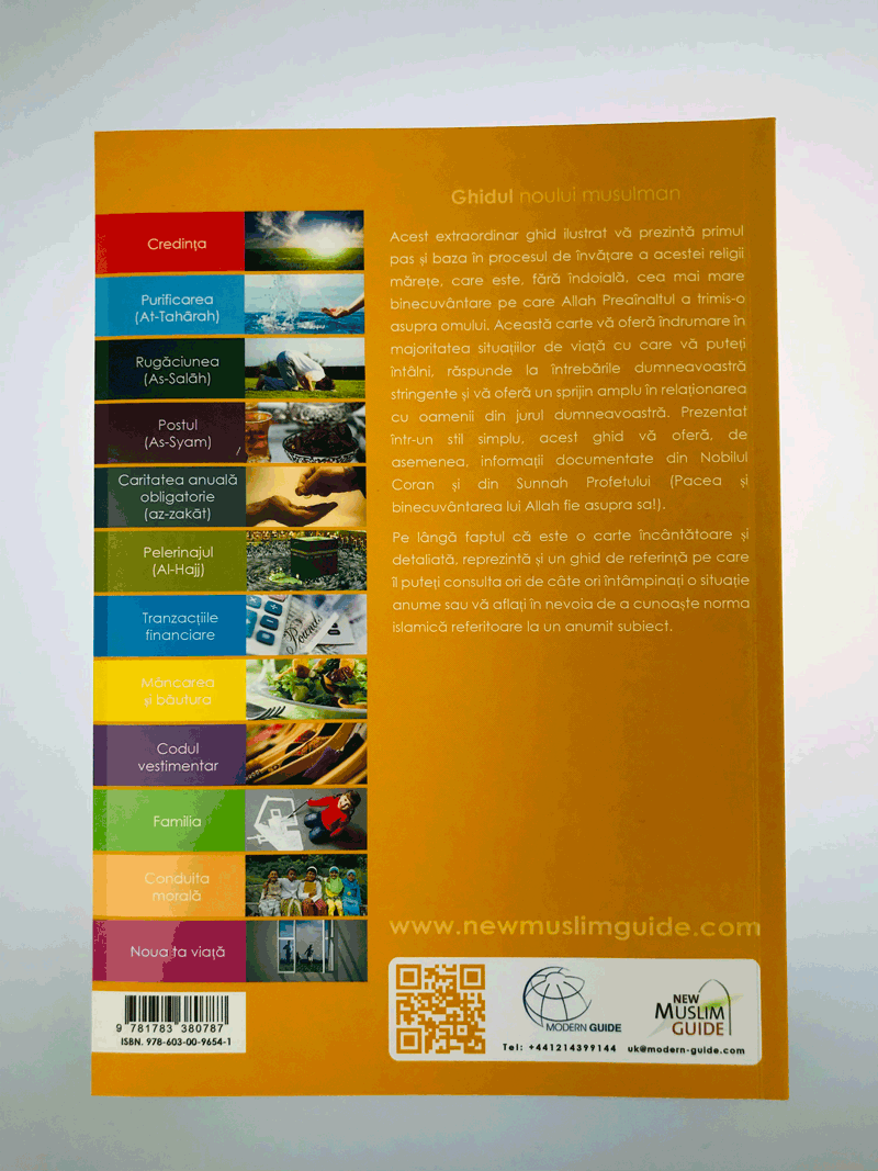 Acest extraordinar ghid ilustrat vă prezintă primul pas și baza în procesul de învățare a acestei religii mărețe, care este, fără îndoială, cea mai mare binecuvântare pe care Allah Preaînaltul a trimis-o asupra omului. Această carte vă oferă îndrumare în majoritatea situațiilor de viață cu care vă puteți întâlni, răspunde la întrebările dumneavoastră stringente și vă oferă un sprijin amplu în relaționarea cu oamenii din jurul dumneavoastră. Prezentat într-un stil simplu, acest ghid vă oferă, de asemenea, informații documentate din Nobilul Coran și din Sunnah Profetului (Pacea și binecuvântarea lui Allah fie asupra sa!). Pe lângă faptul că este o carte încântătoare și detaliată, reprezintă și un ghid de referință pe care îl puteți consulta ori de câte ori întâmpinați o situație anume sau vă aflați în nevoia de a cunoaște norma islamică referitoare la un anumit subiect.