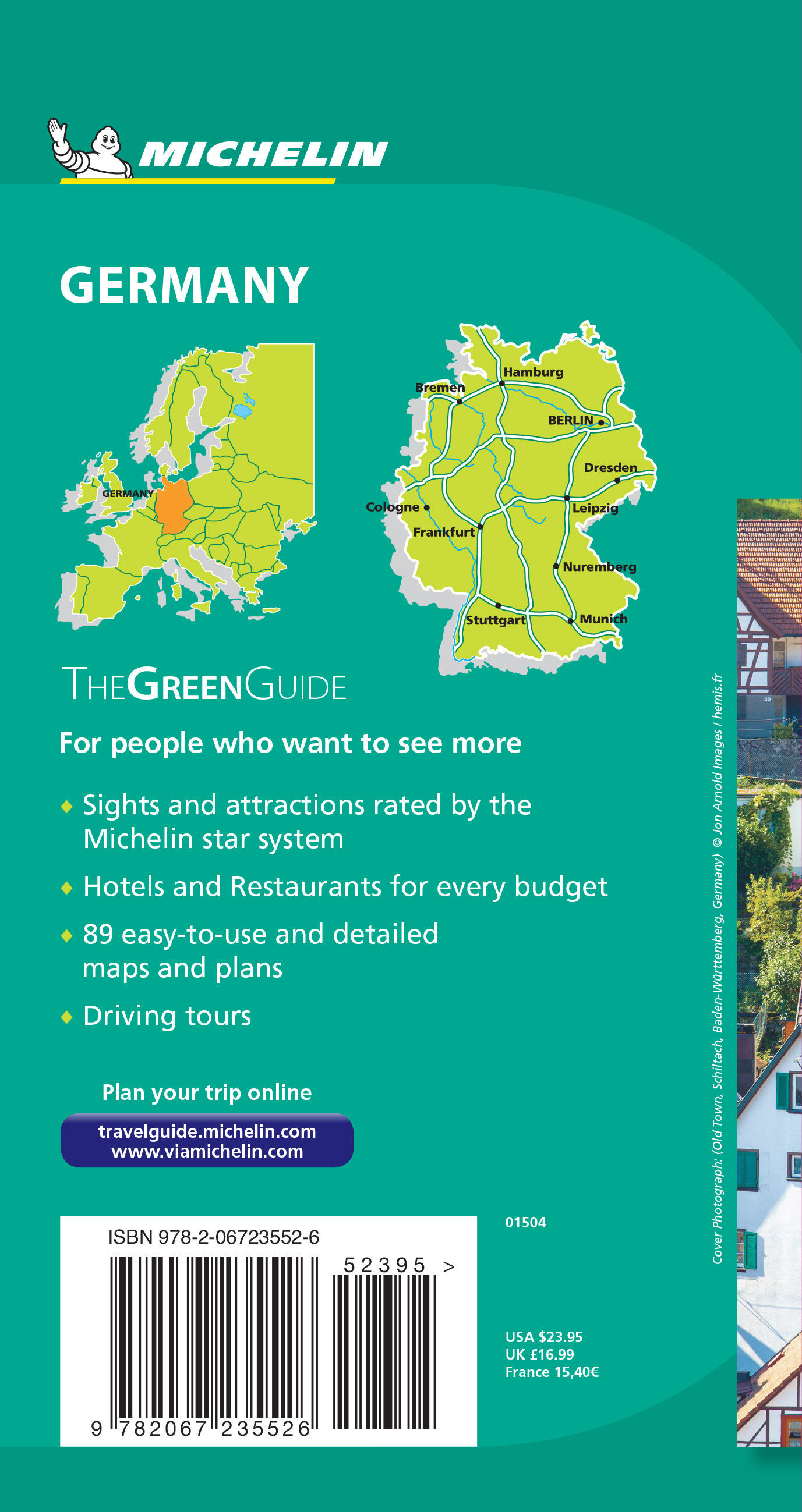 Ghidul Verde Germania, organizat pe districte pentru a facilita organizarea călătoriilor, prezintă principalele puncte de interes ale țării. Descoperiți orașele sale dinamice, peisajele și cultura care înalță spiritul. Faceți un tur pe jos în orașul vechi Lübeck, bucurați-vă de un tur cu bicicleta în Berlin sau îndreptați-vă spre satele pitorești ale Văii râului Mosela. Opriți-vă într-o cafenea din Dresda sau răsfățați-vă pe un stein la Oktoberfest în Munchen. Celebrul sistem de clasare a stelelor Michelin, fotografiile inedite, hărțilele și sfaturile de încredere ale editorilor vă duc în inima Germaniei pentru o călătorie de neuitat.