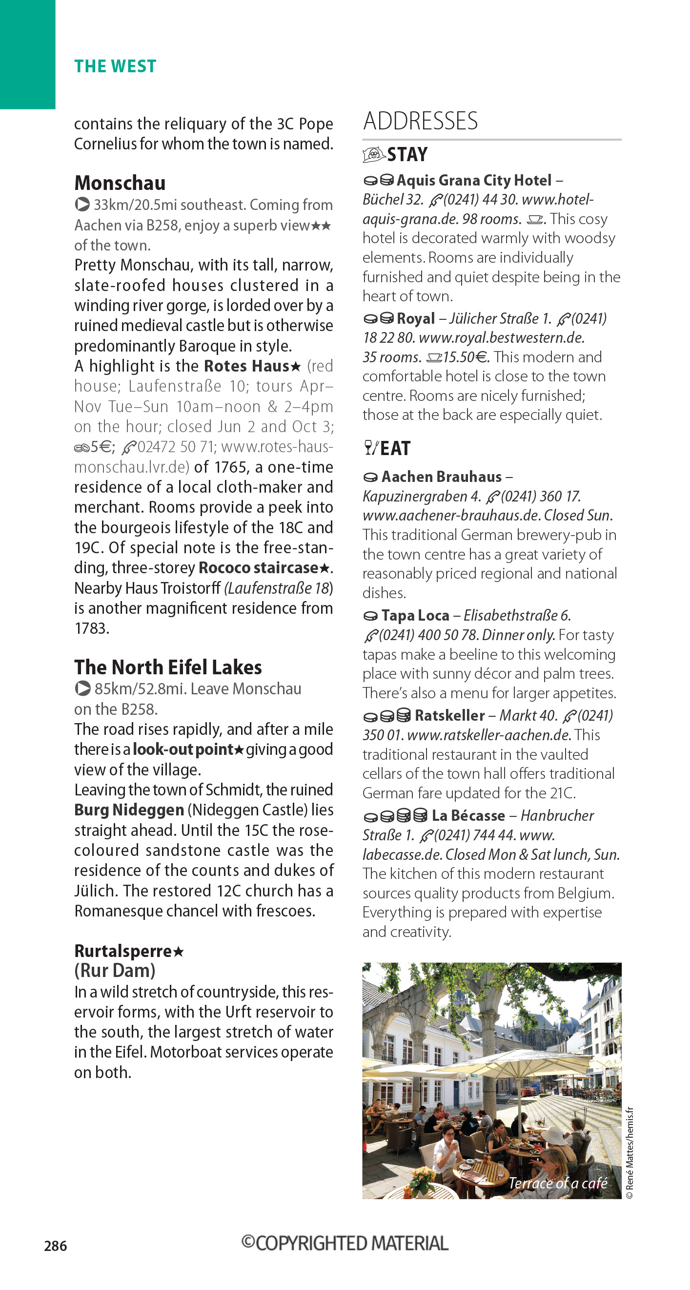 • Sidebars-urile de-a lungul ghidului se concentrează pe subiecte intrigante, cum ar fi „Water Castles” medievale din regiunea Munster și obiceiurile de a consuma ceai East Frisian.